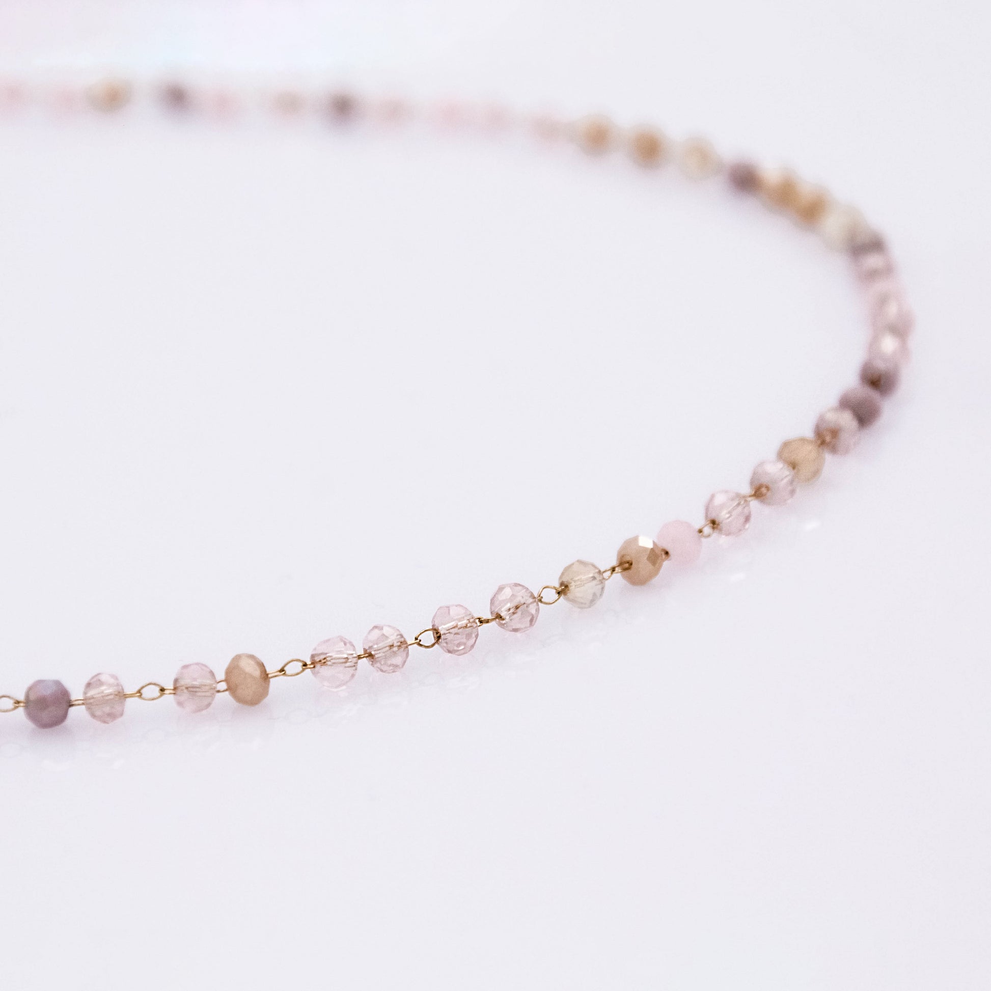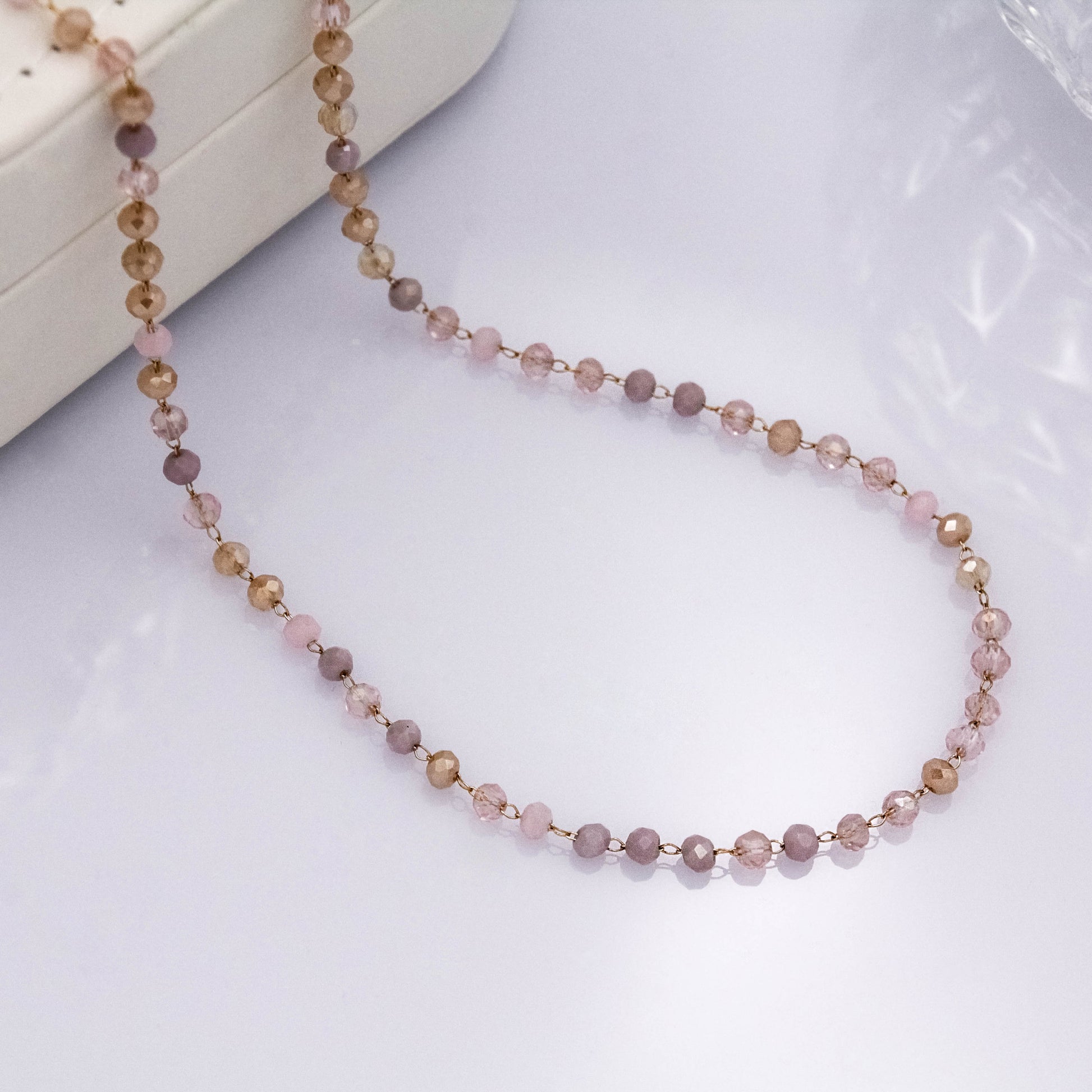 Arany színű nyaklánc lila/rózsaszín gyöngyökkel.