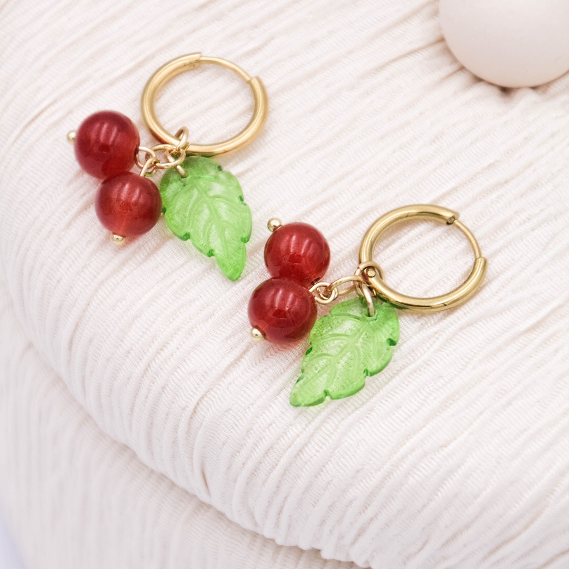 Arany színű fülbevaló üveggyöngy cseresznyével.