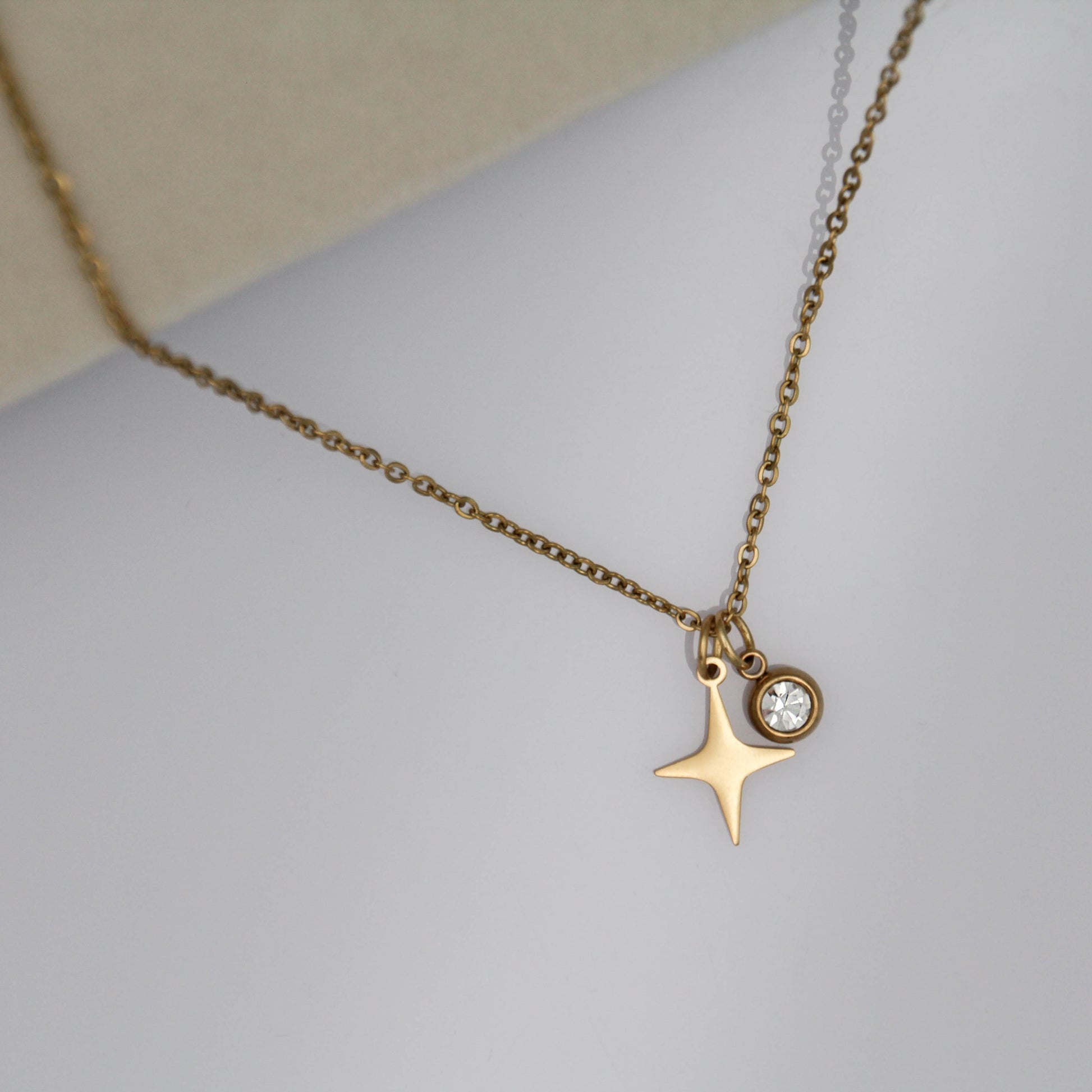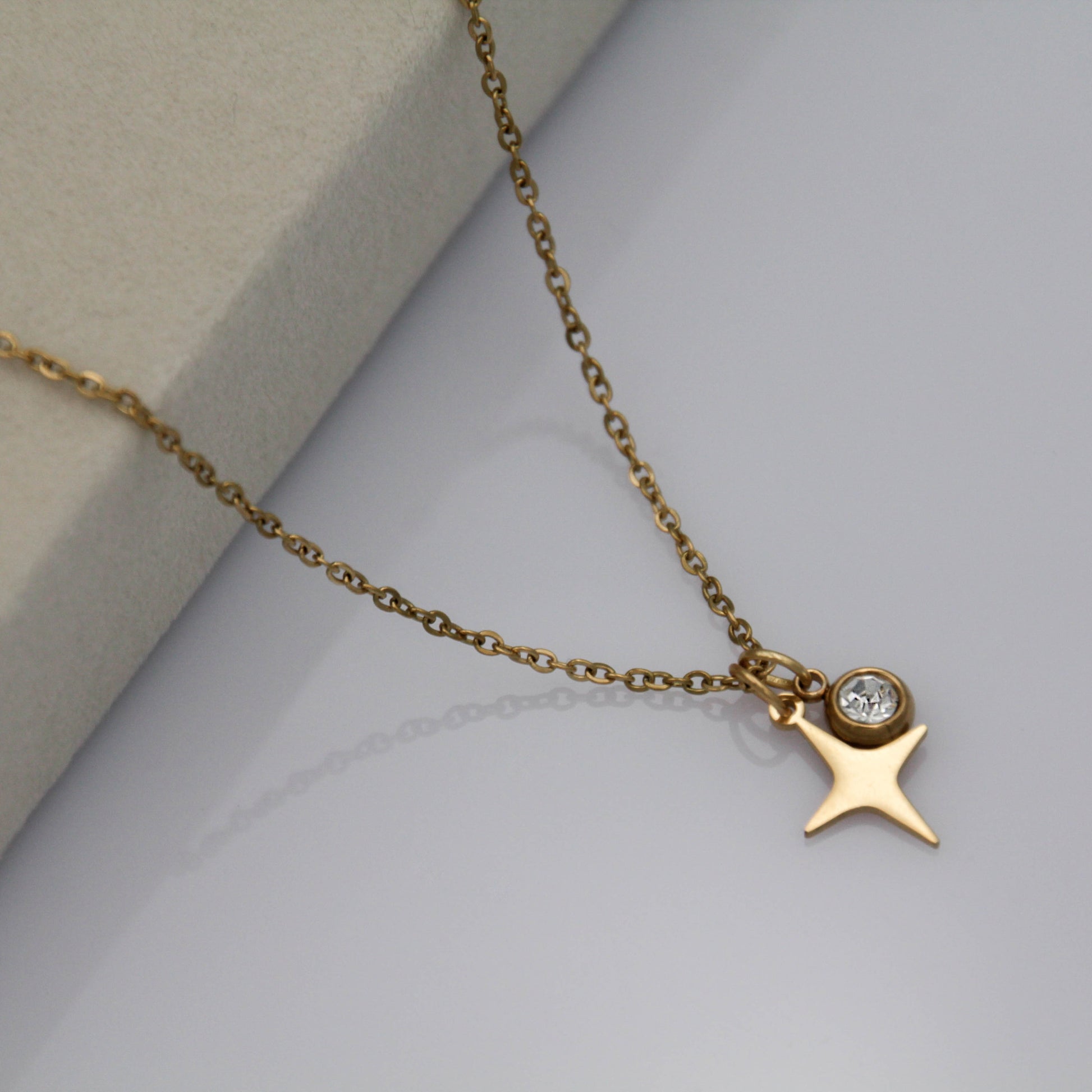 Arany színű nyaklánc csillag alakú- és cirkónia kristály medállal.