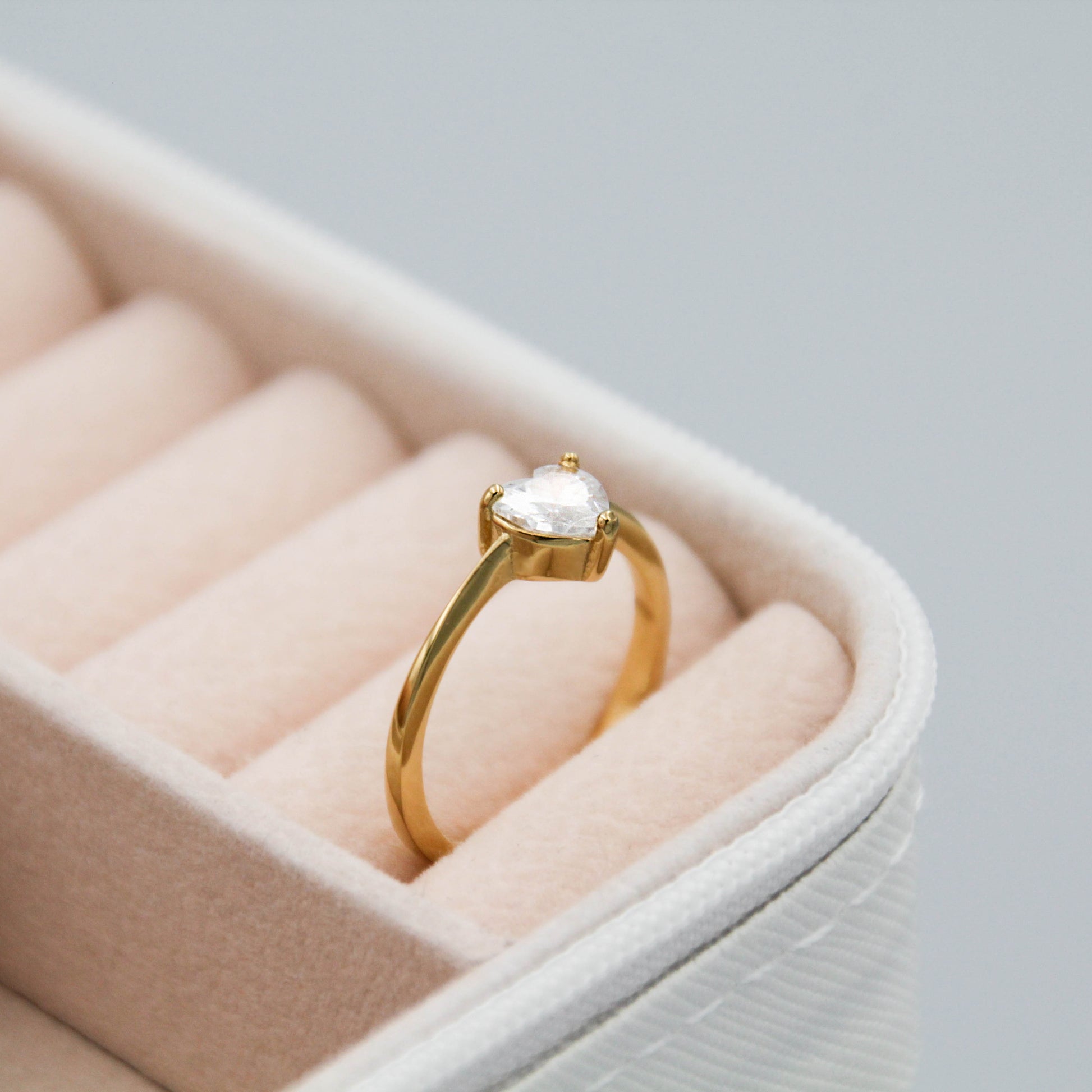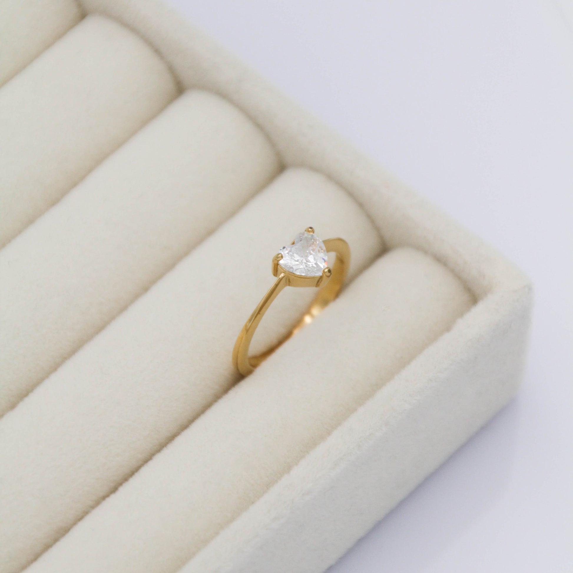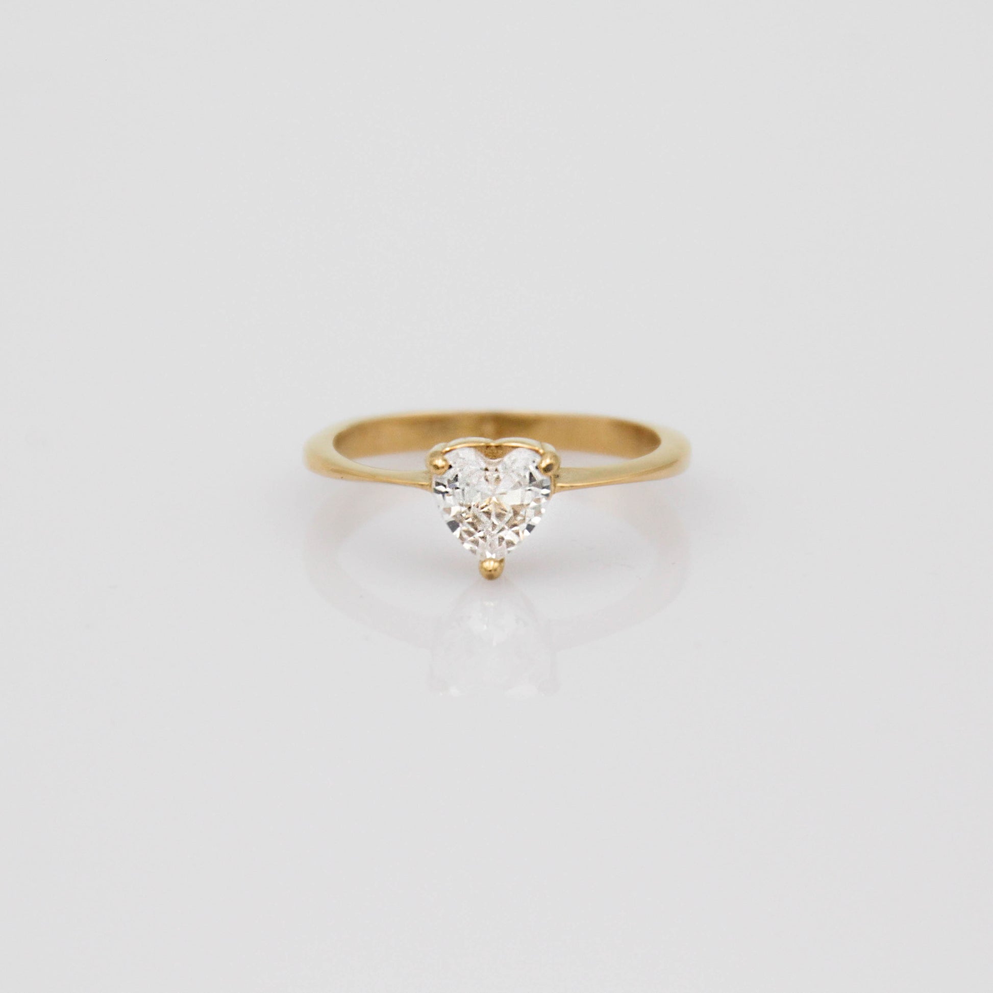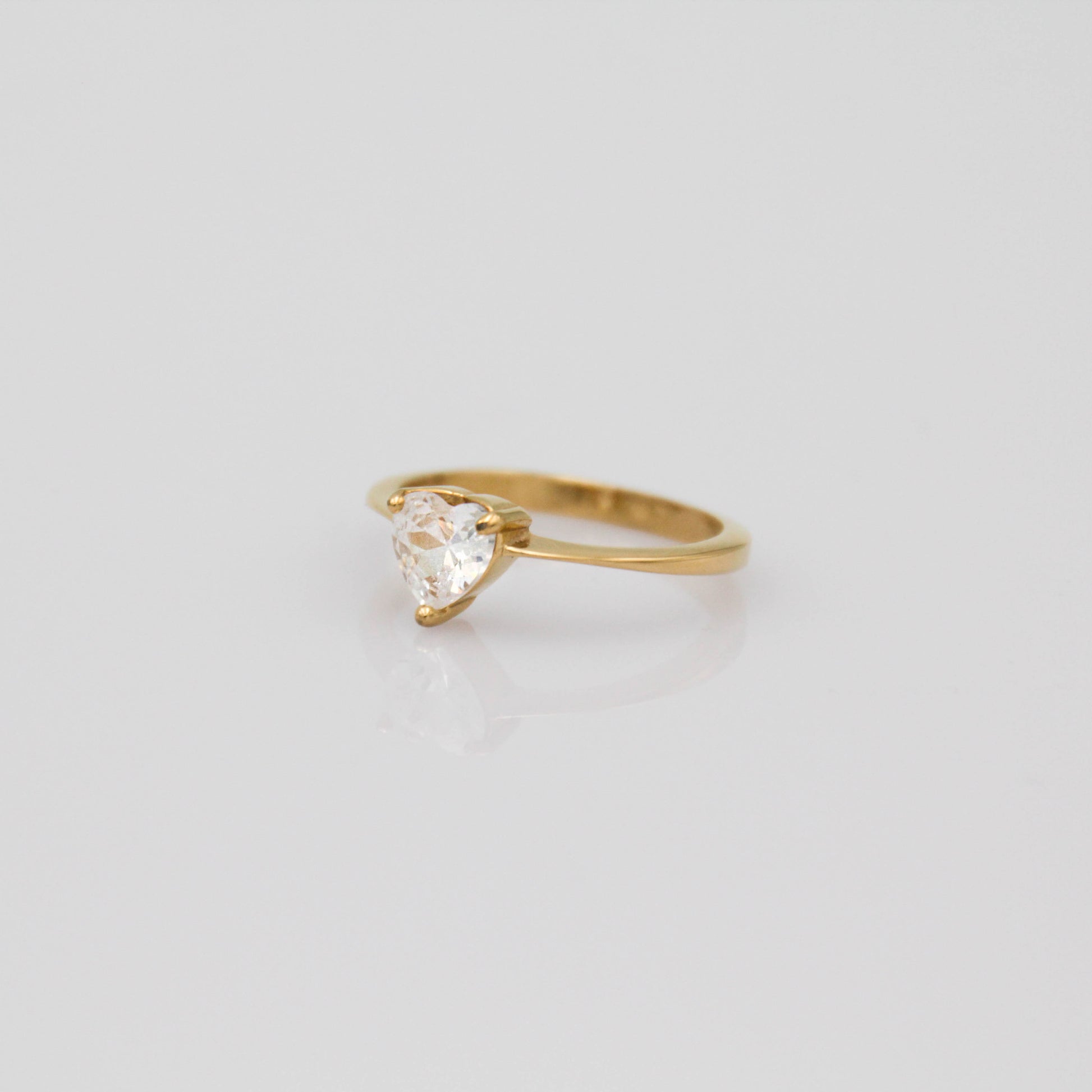 Arany színű vékony gyűrű szív formájú cirkónia kristállyal.