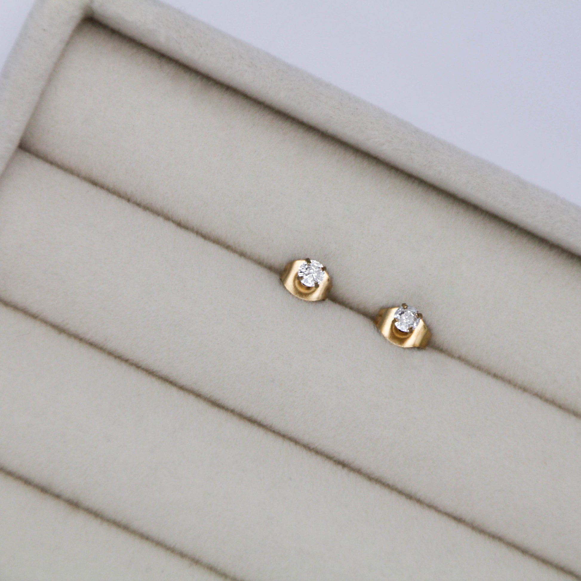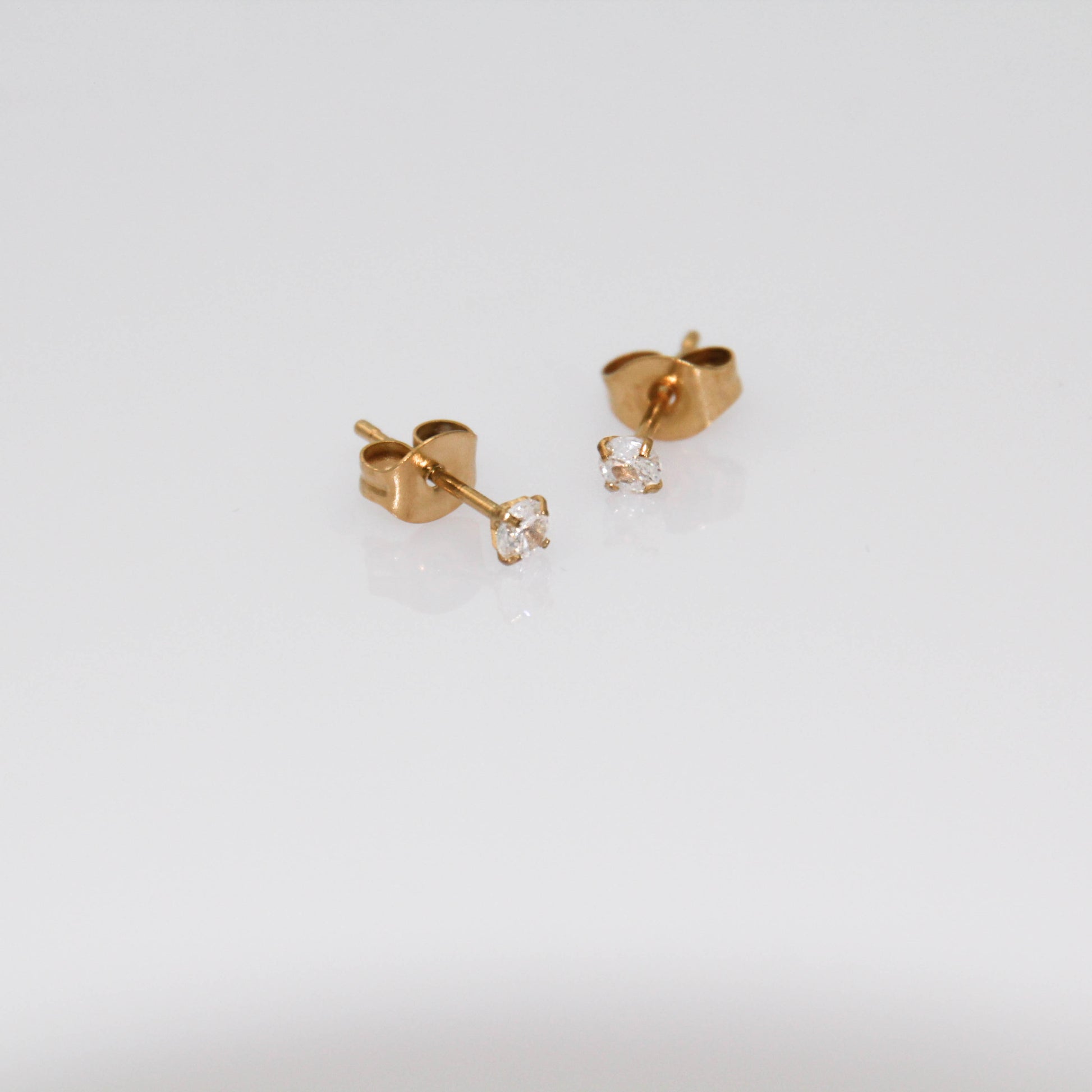 Arany színű, cirkónia kristállyal díszített beszúrós fülbevaló.