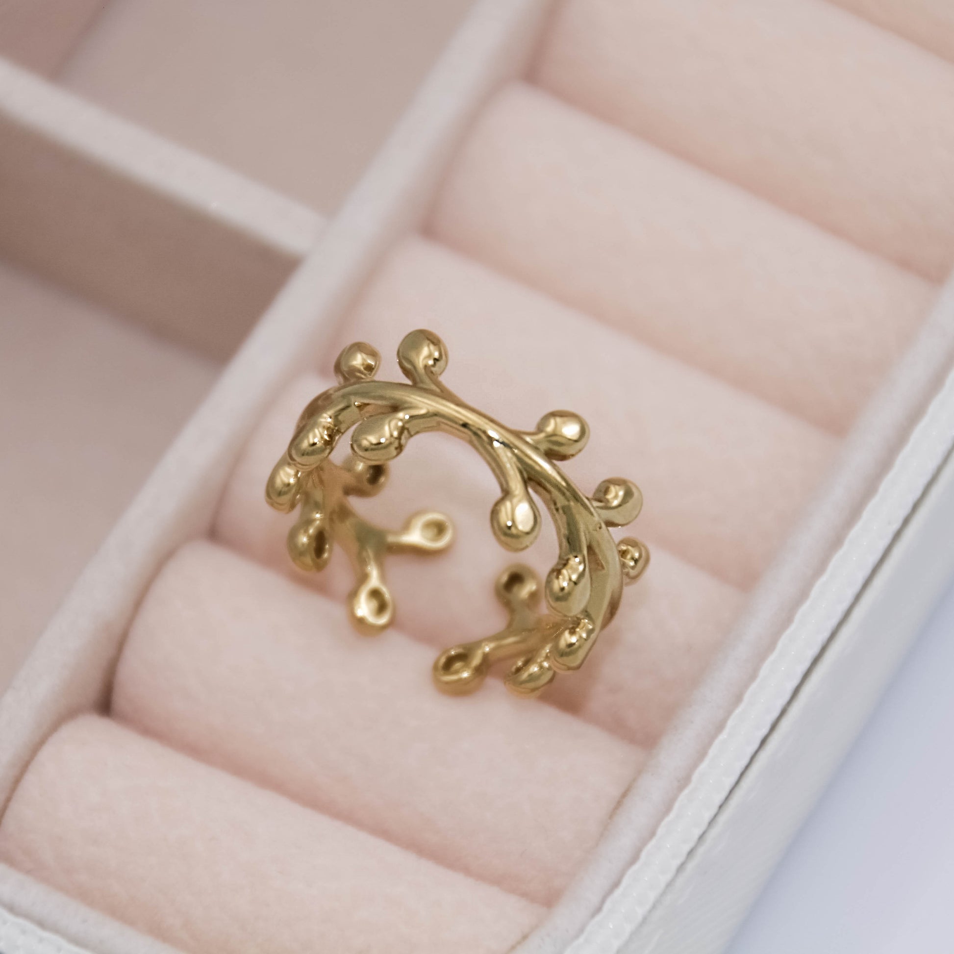 Arany színű, állítható méretű gyűrű.