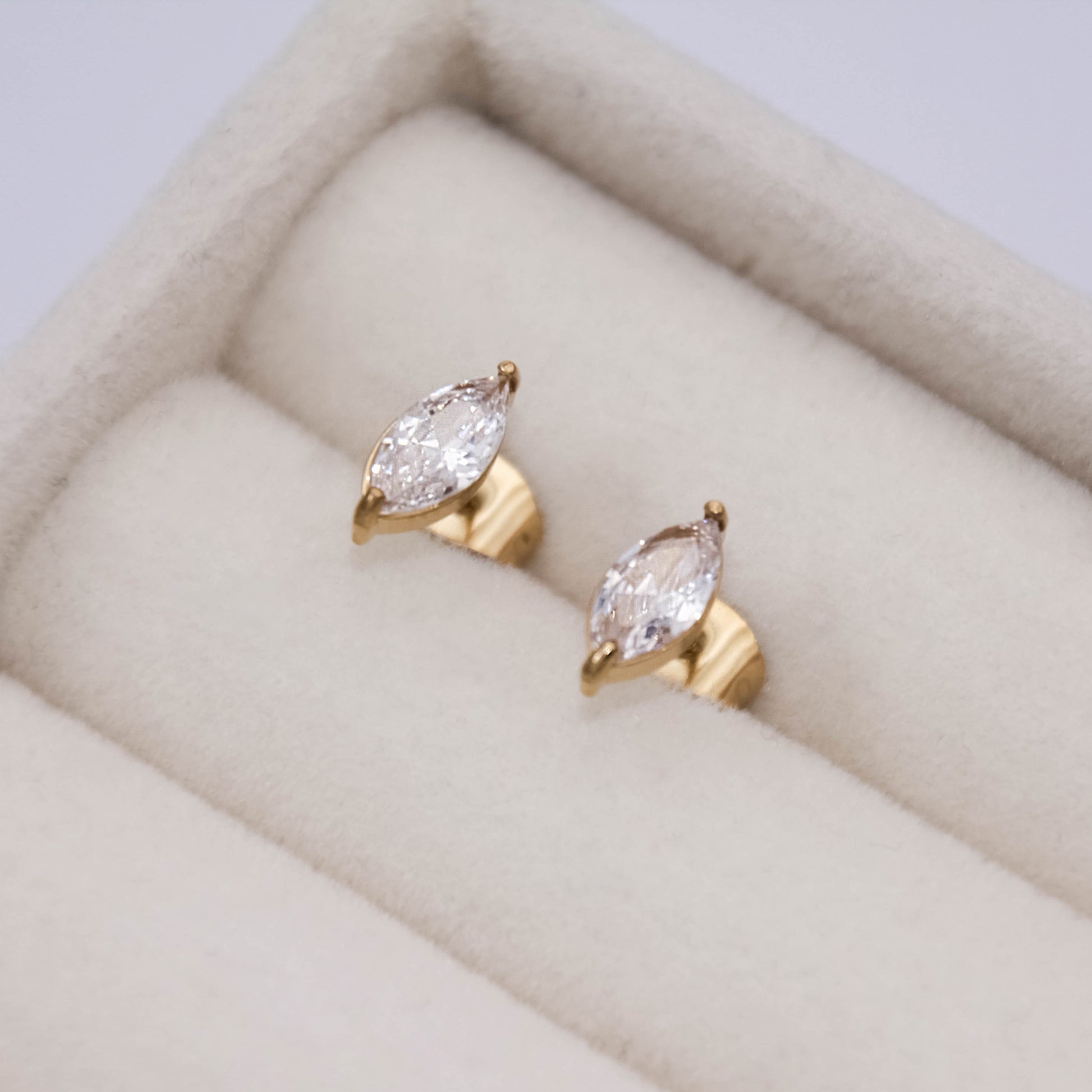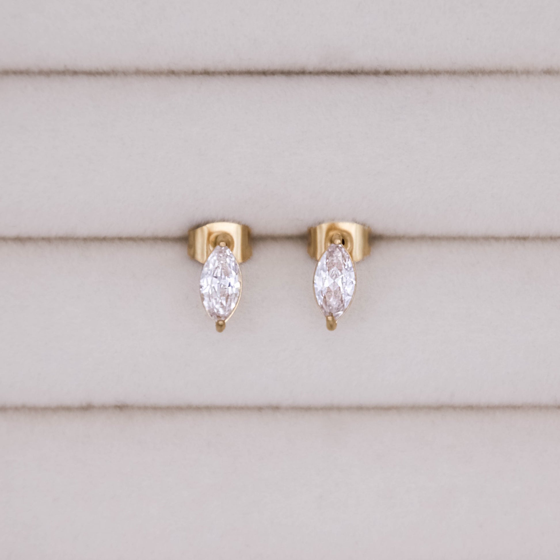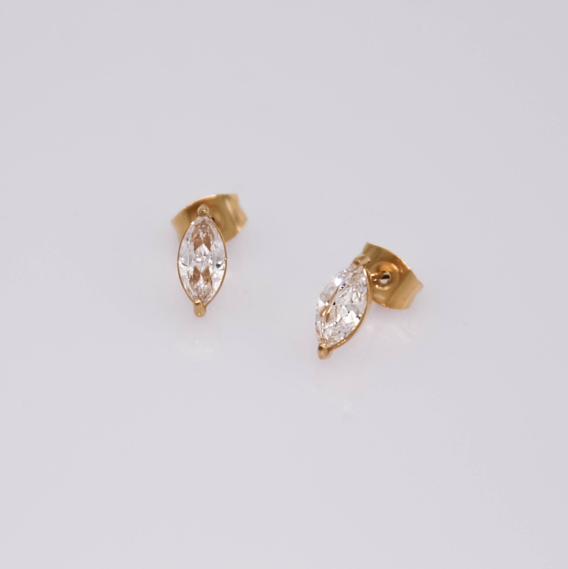 Arany színű "beszúrós" típusú fülbevaló cirkónia kristállyal.
