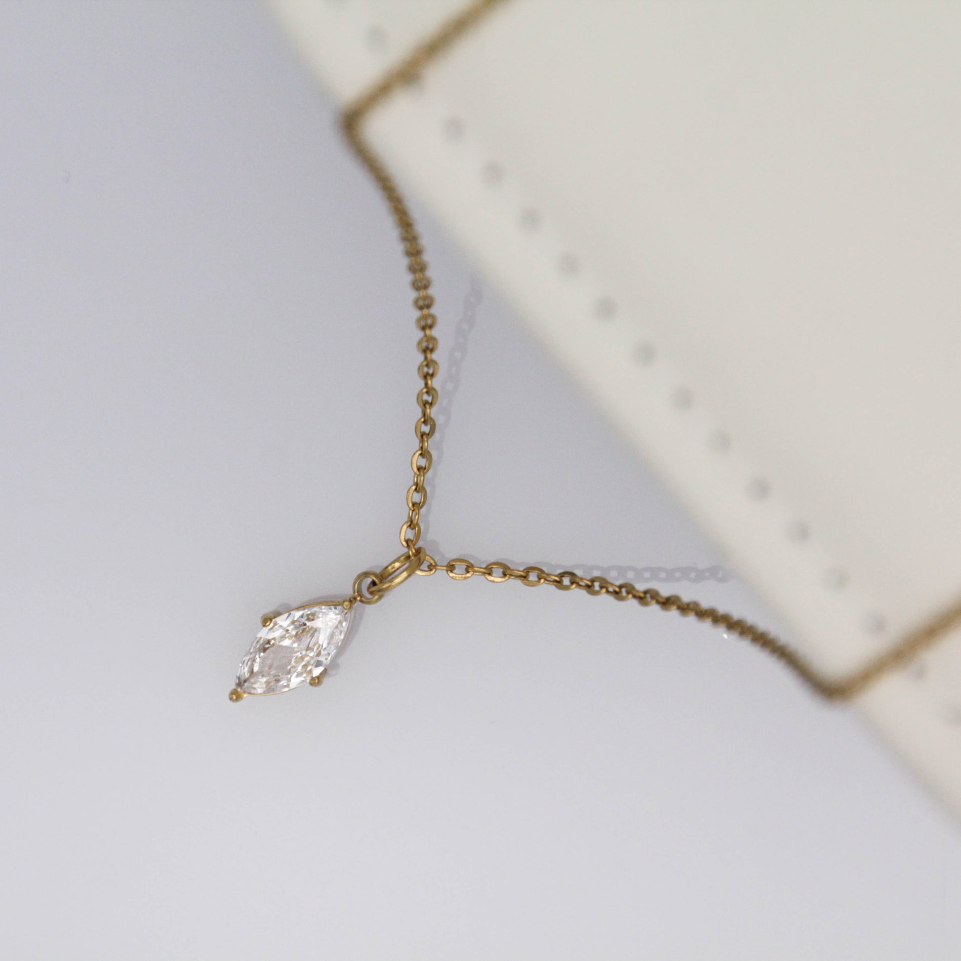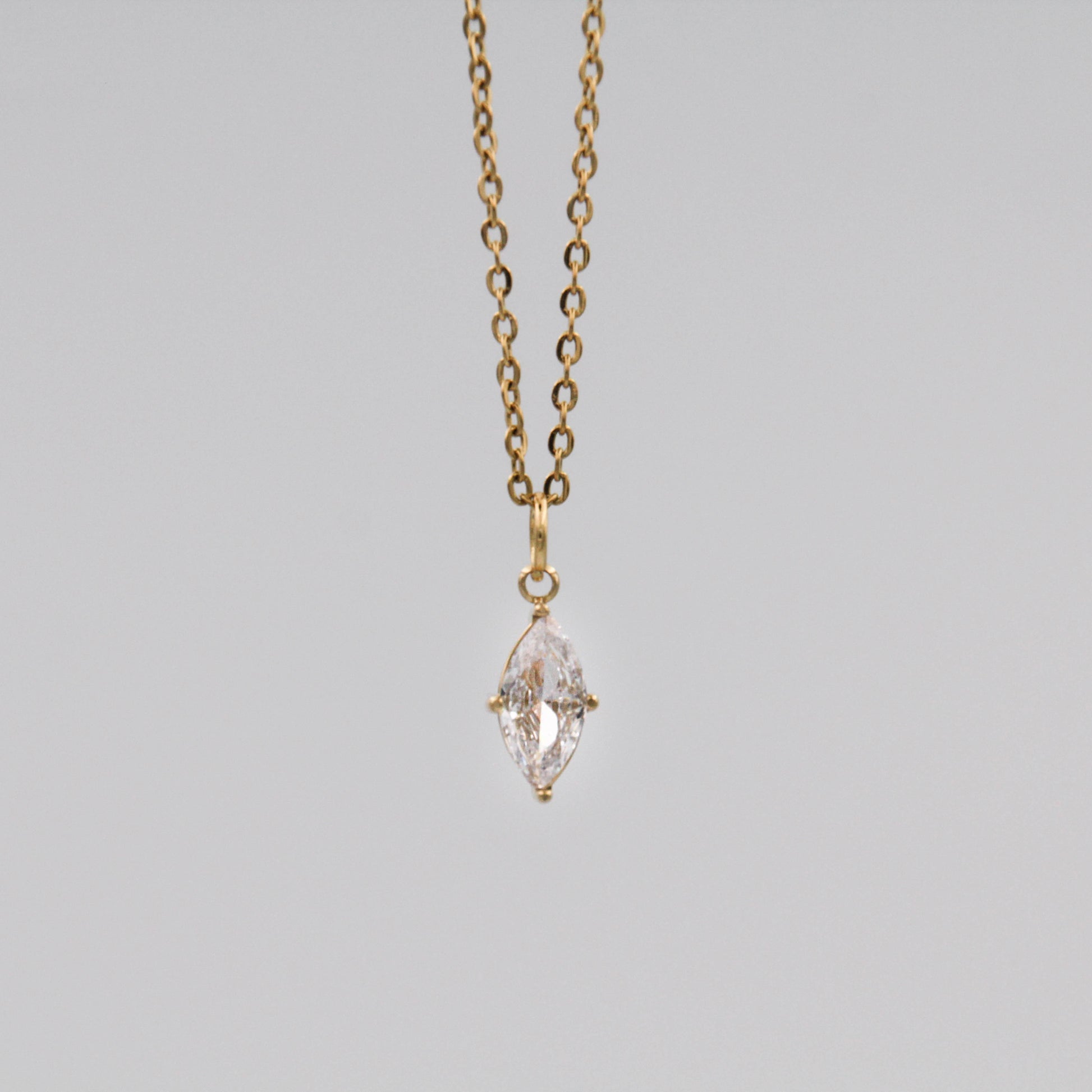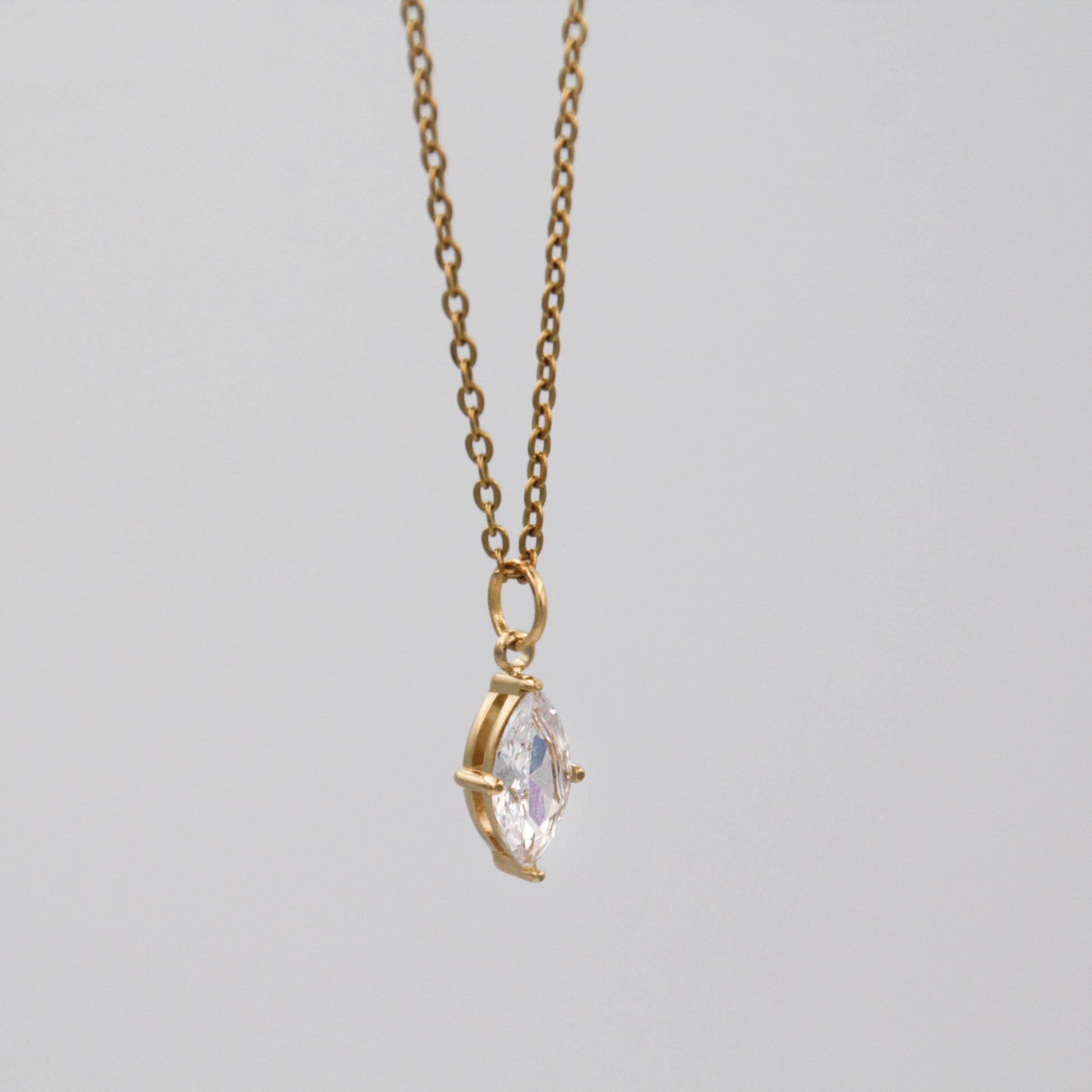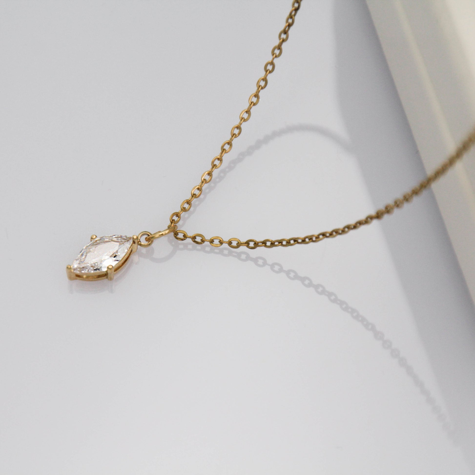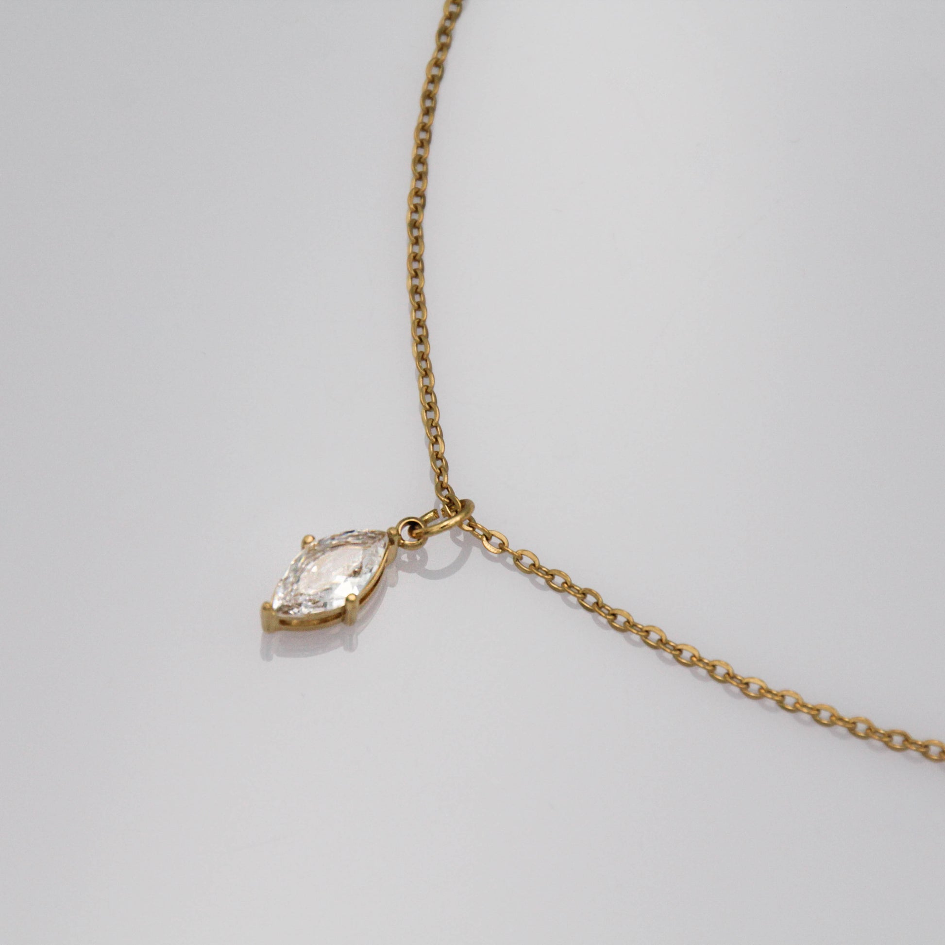 Arany színű nyaklánc mandula alakú cirkónia kristály medállal.