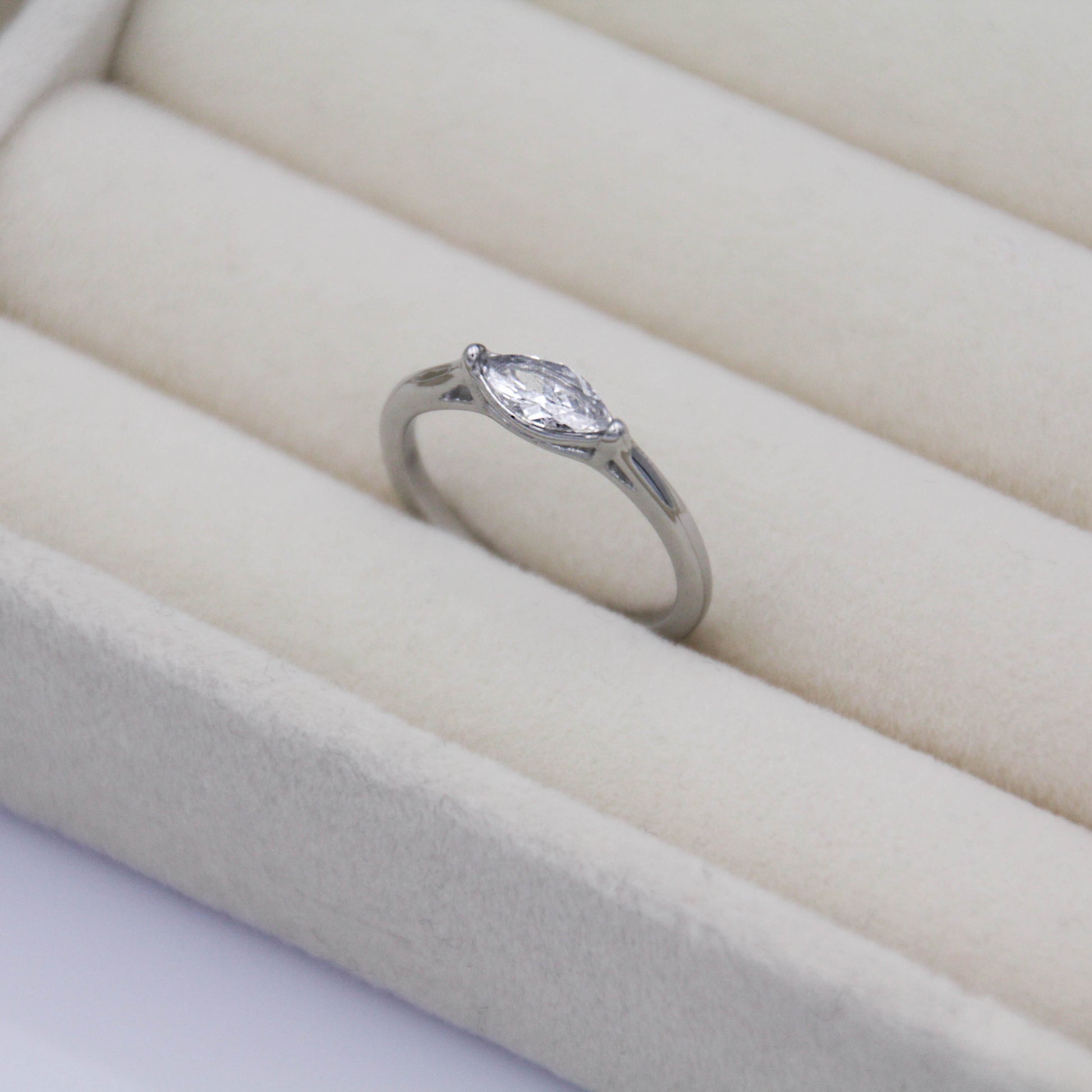 Ezüst színű gyűrű mandula formájú cirkónia kristállyal.