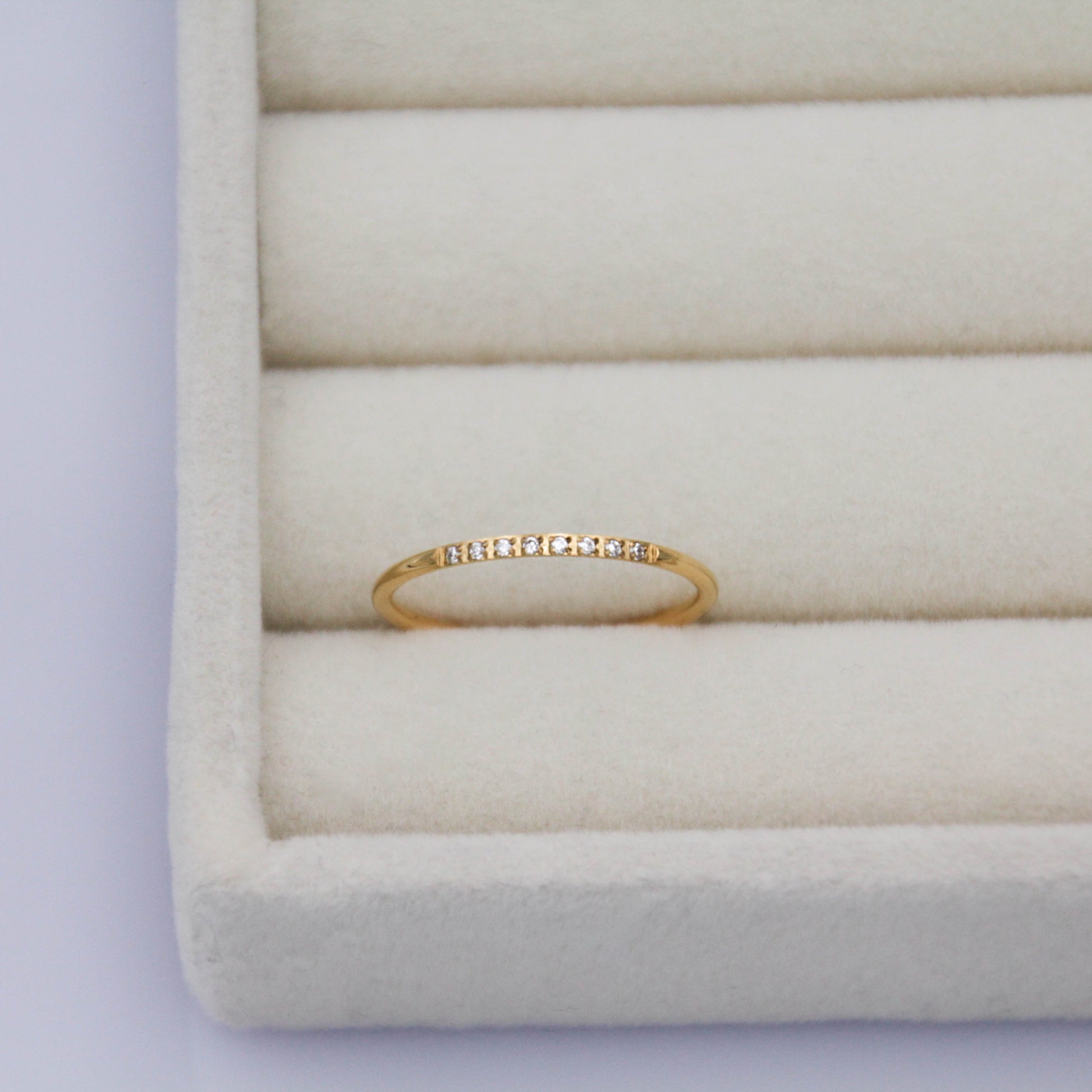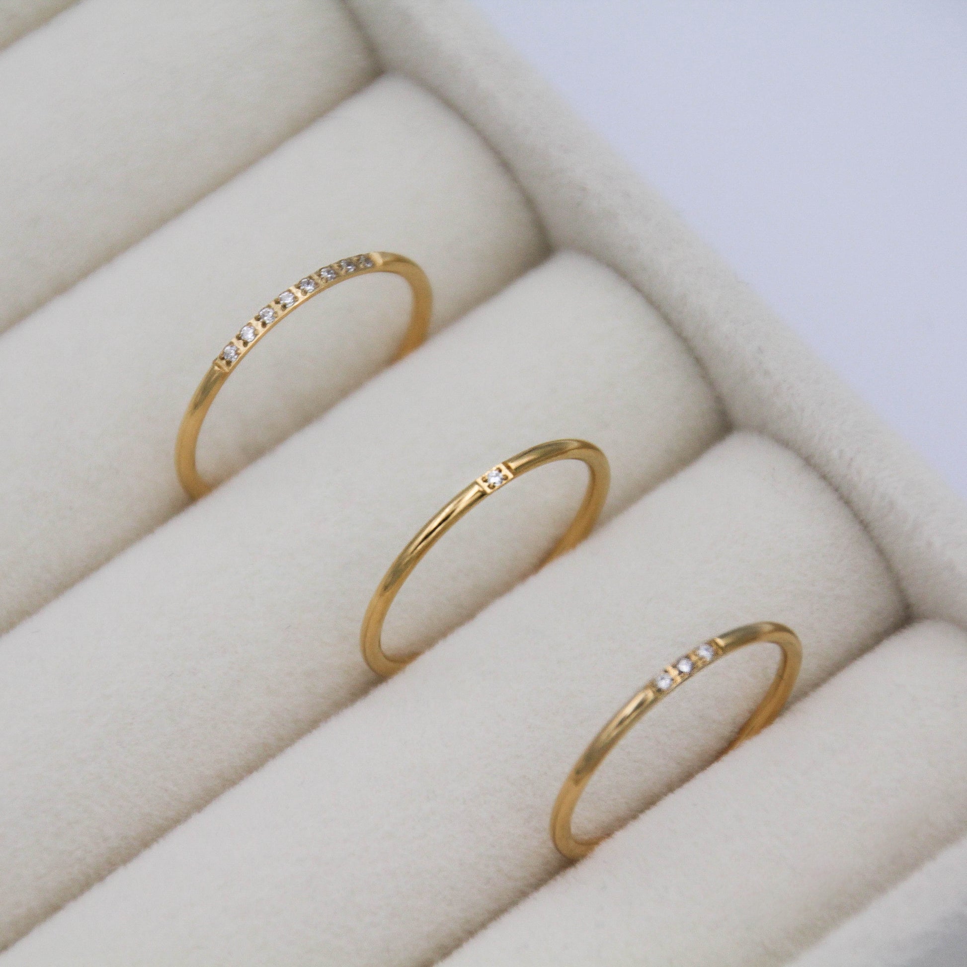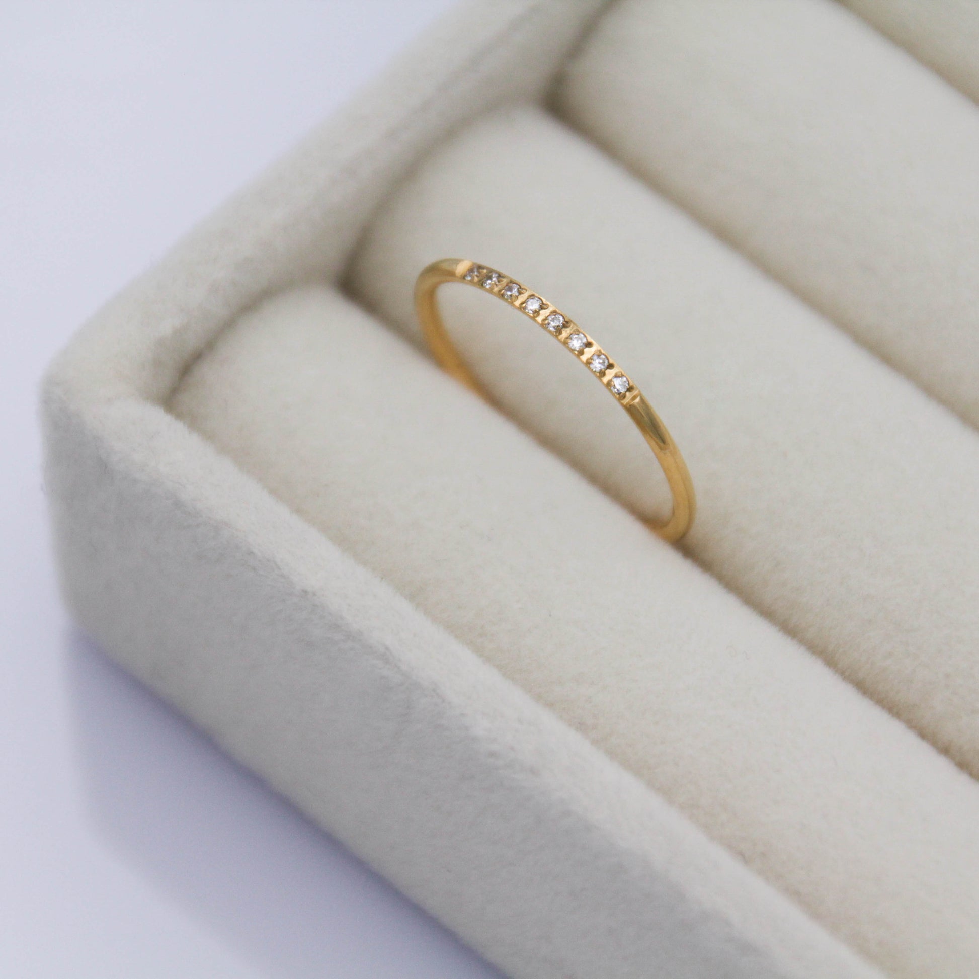 Arany színű gyűrű 8 apró cirkónia kristállyal.