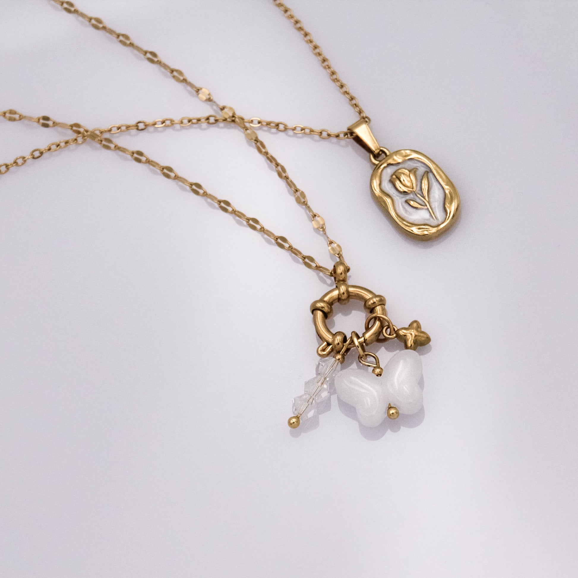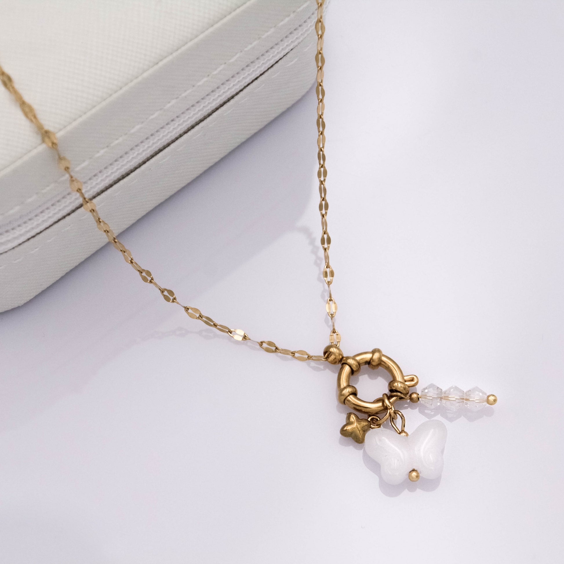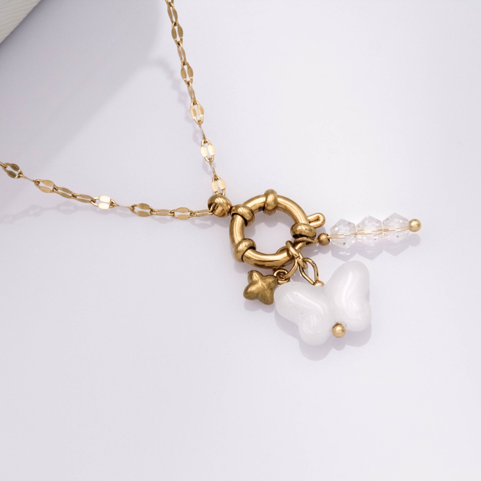 - Anyaga: aranyozott rozsdamentes nemesacél, üveggyöngyök.