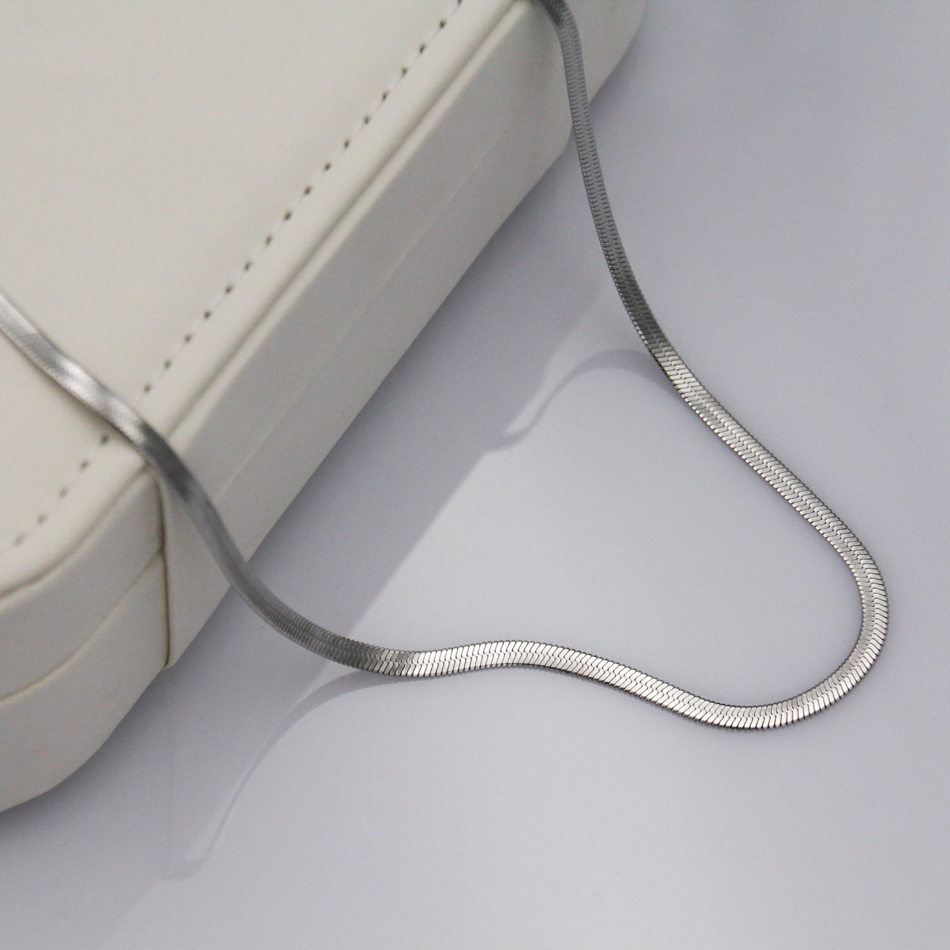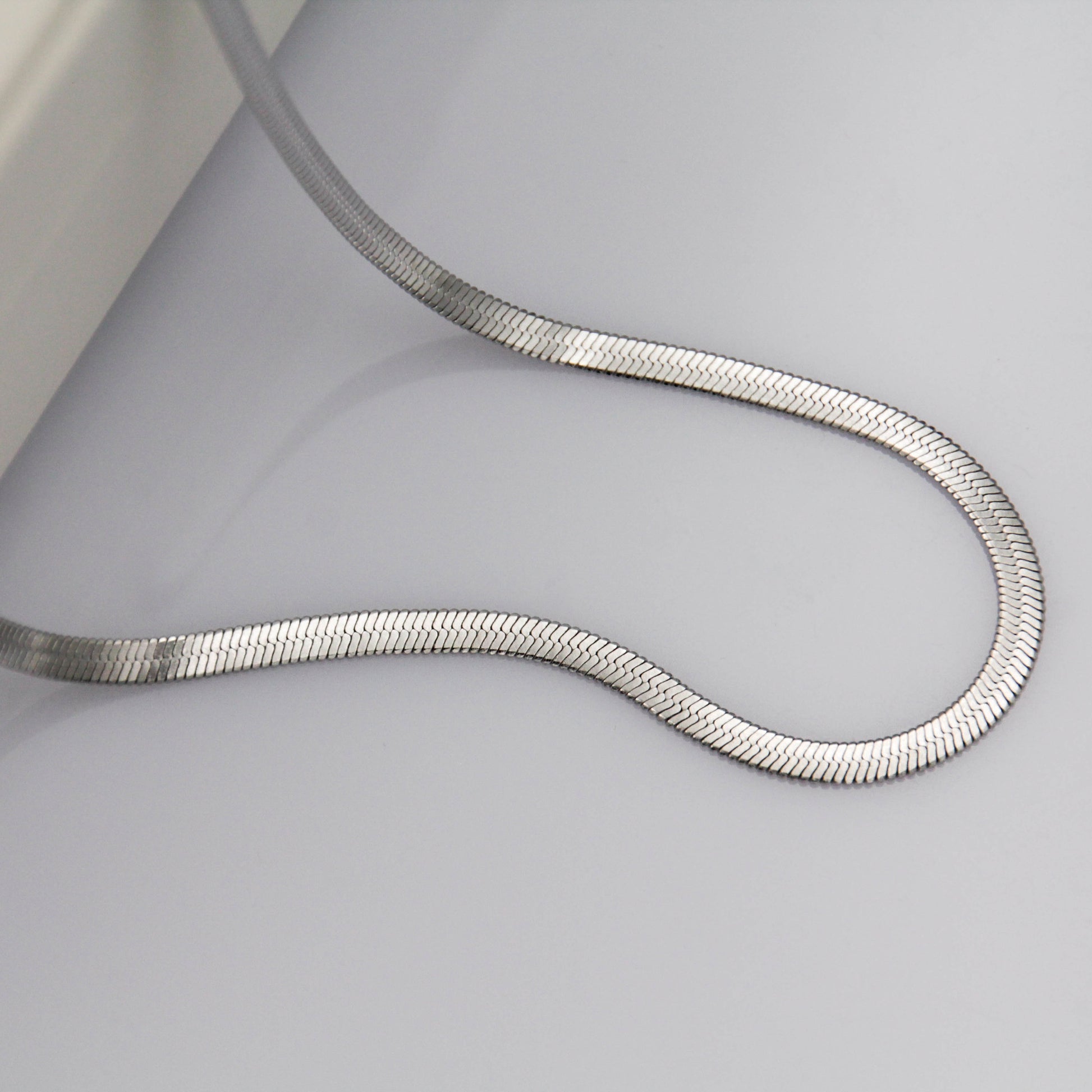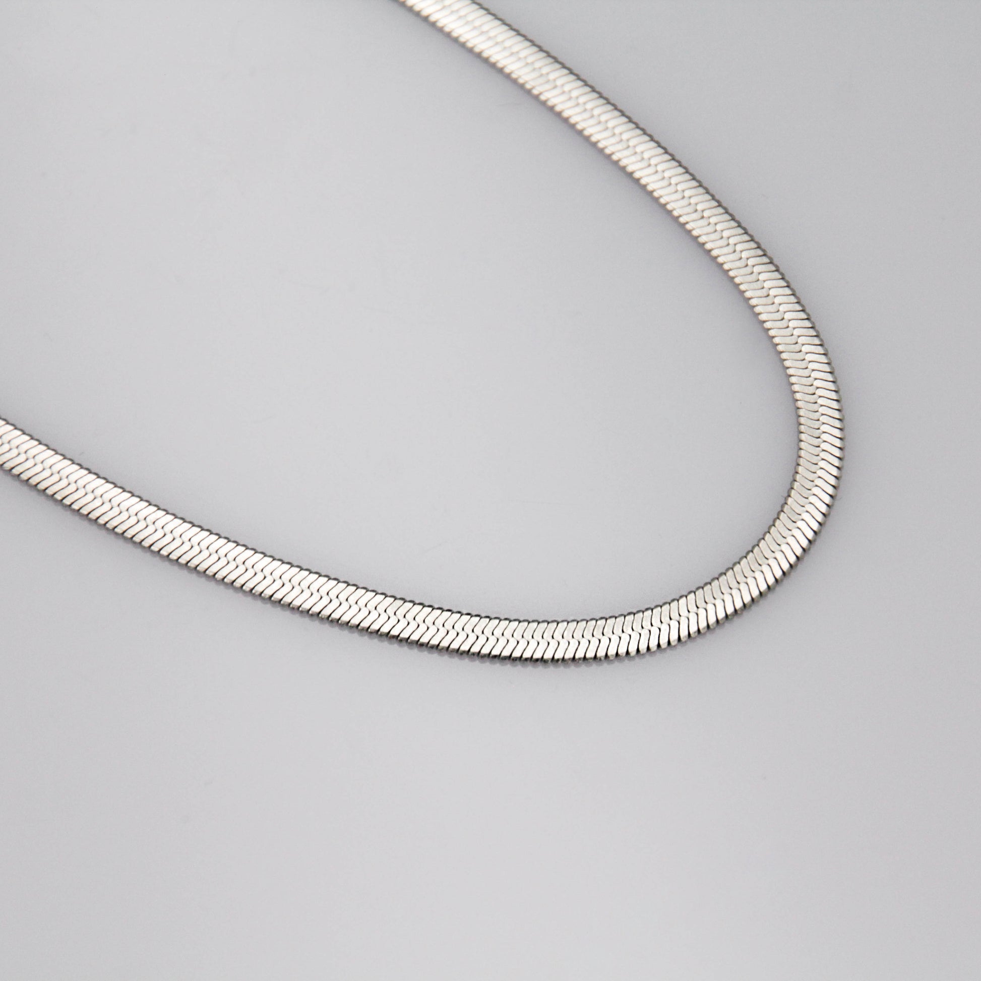Ezüst színű "snake chain" típusú nyaklánc.
