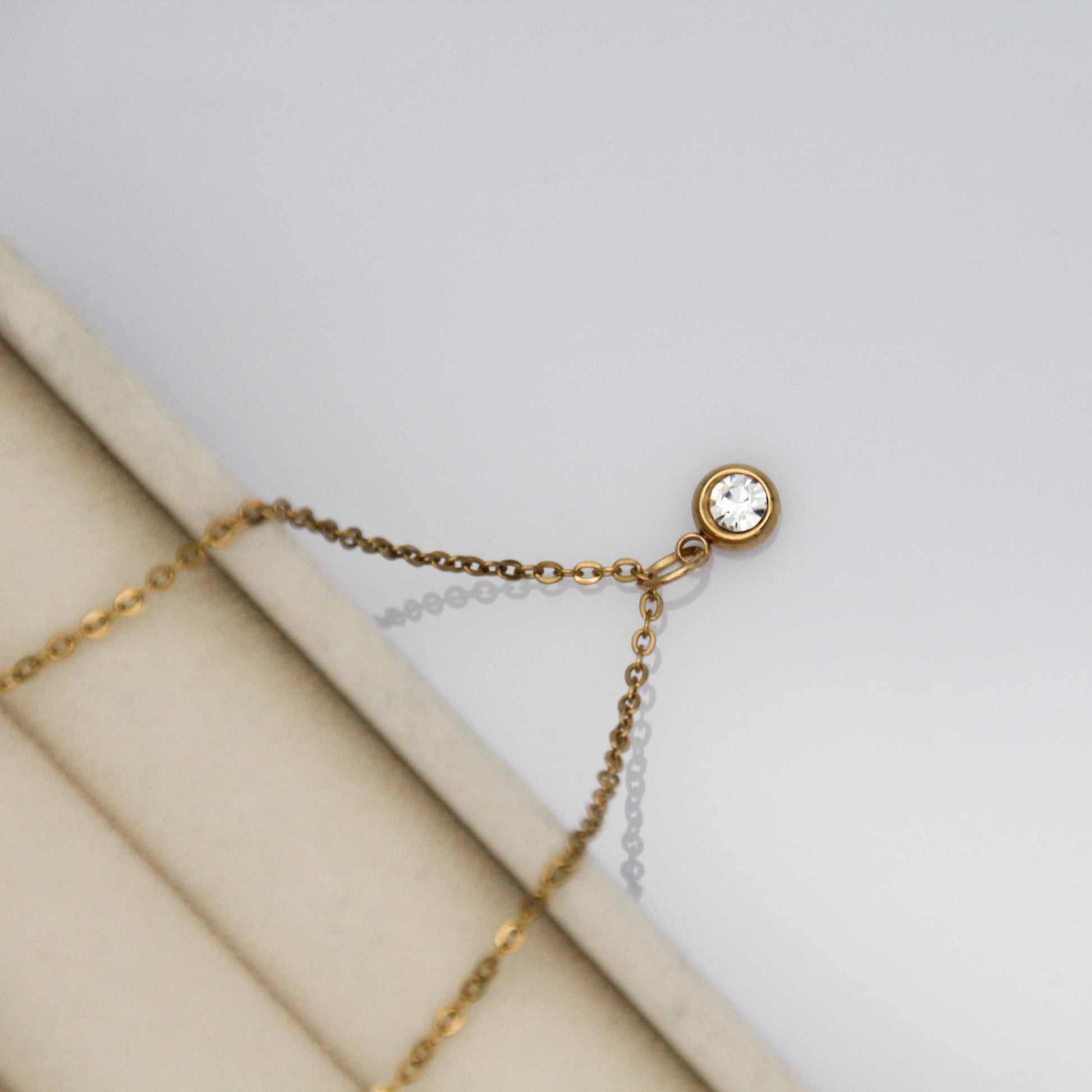- Anyaga: aranyozott rozsdamentes nemesacél, cirkónia kristály