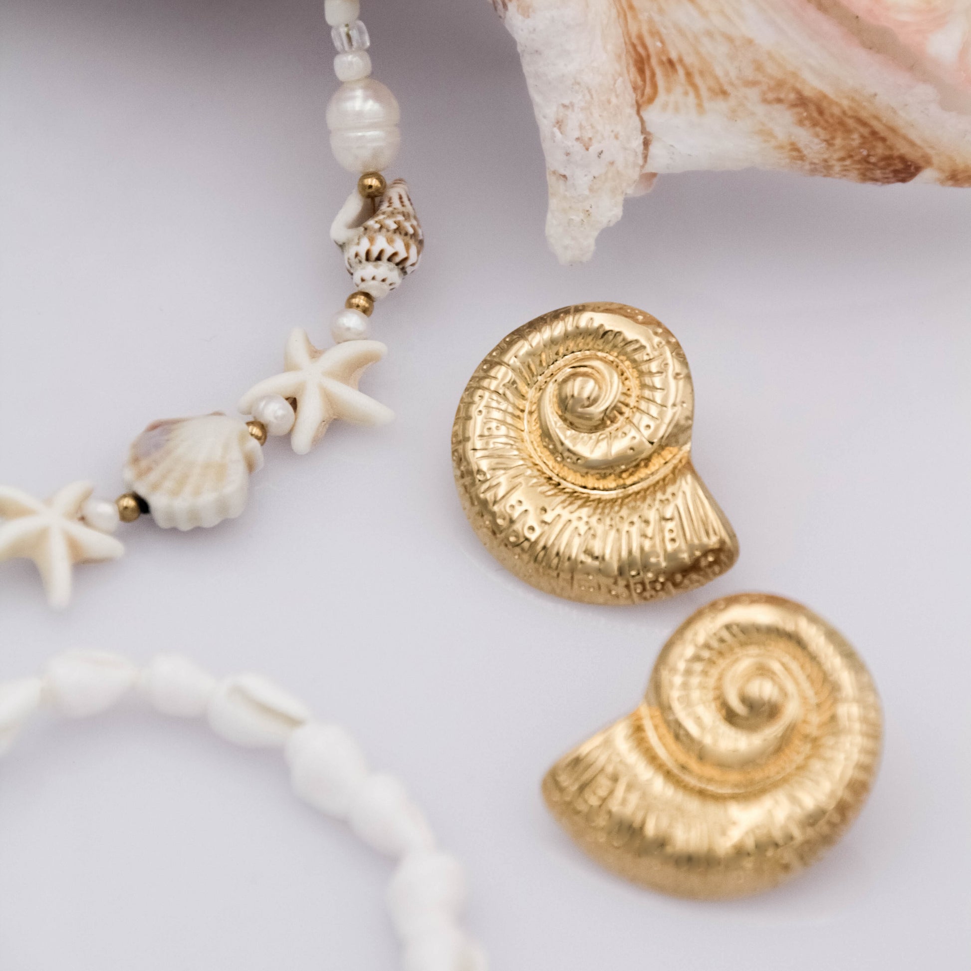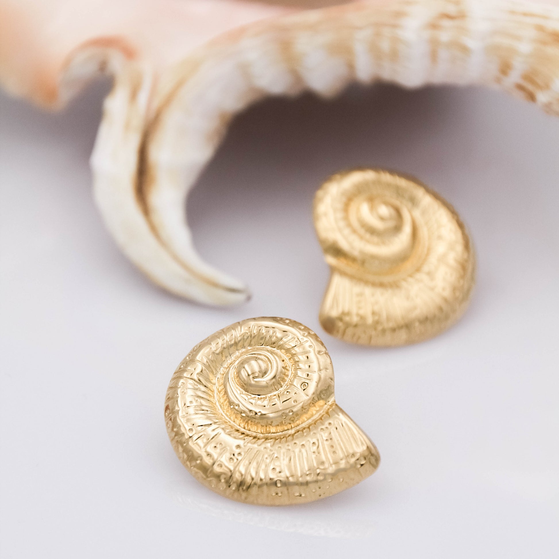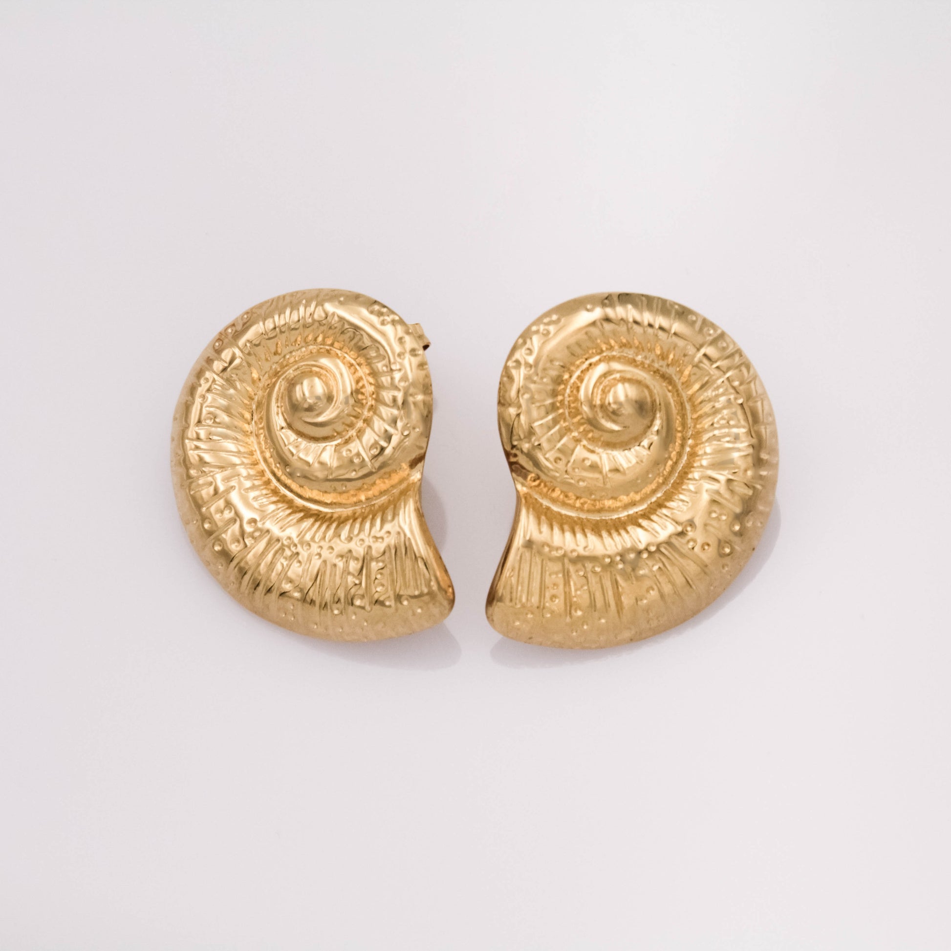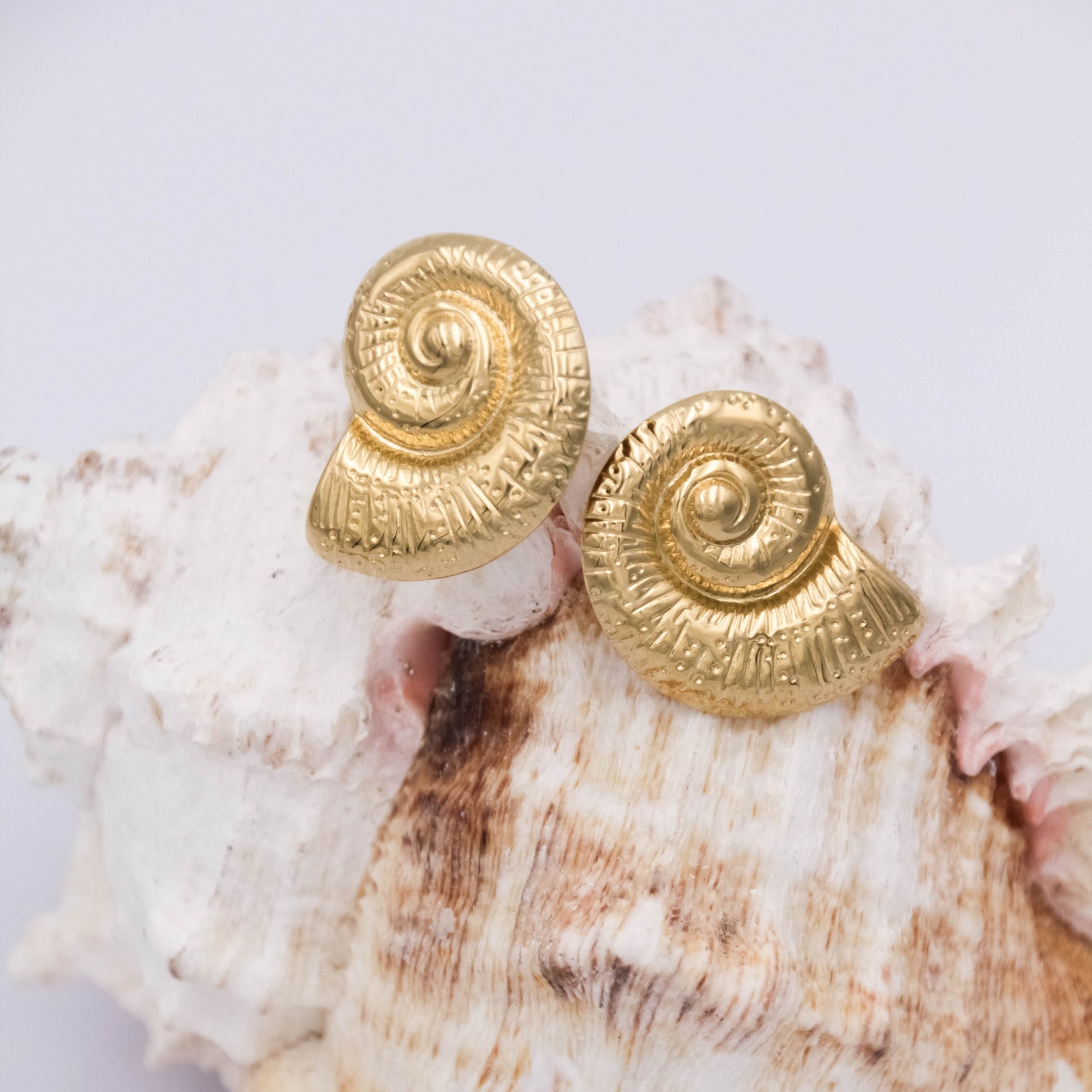 Arany színű, csiga formájú "beszúrós" típusú fülbevaló.