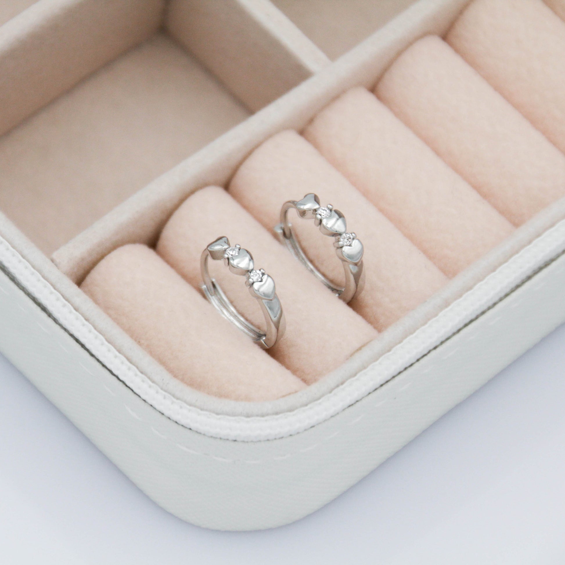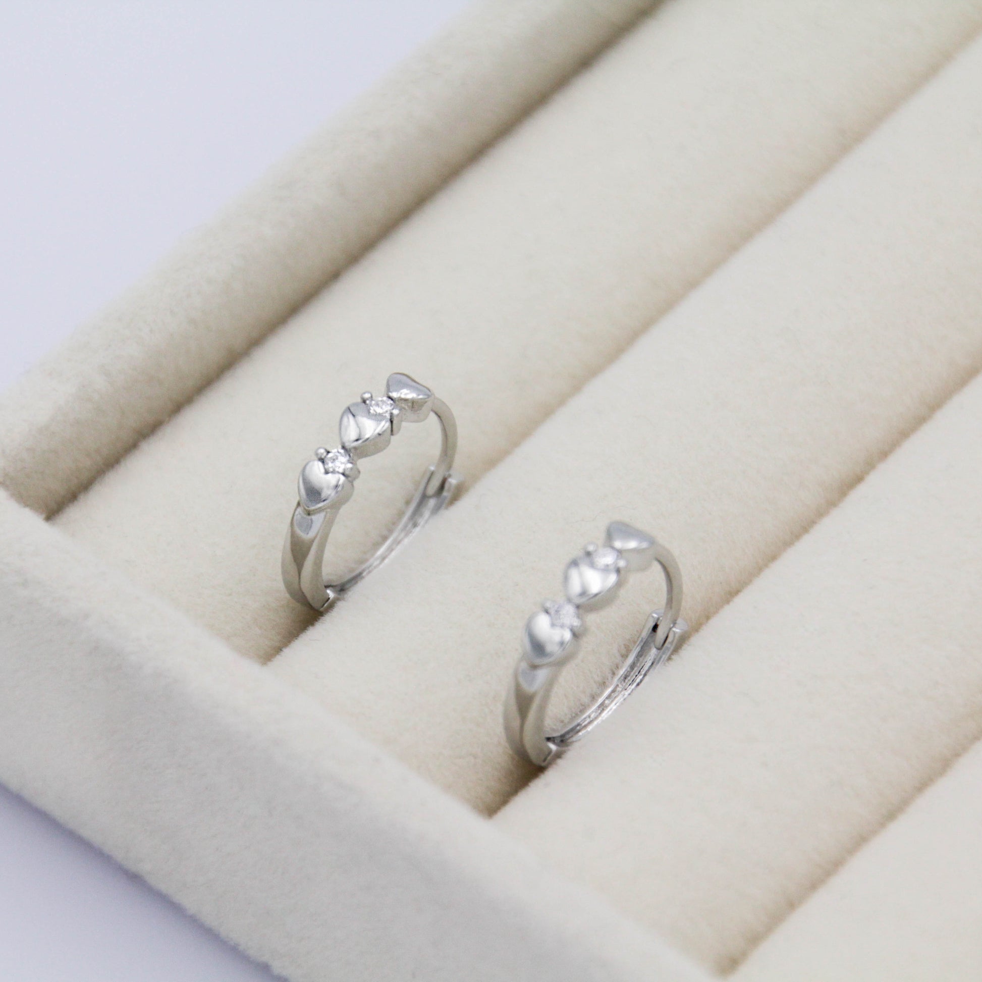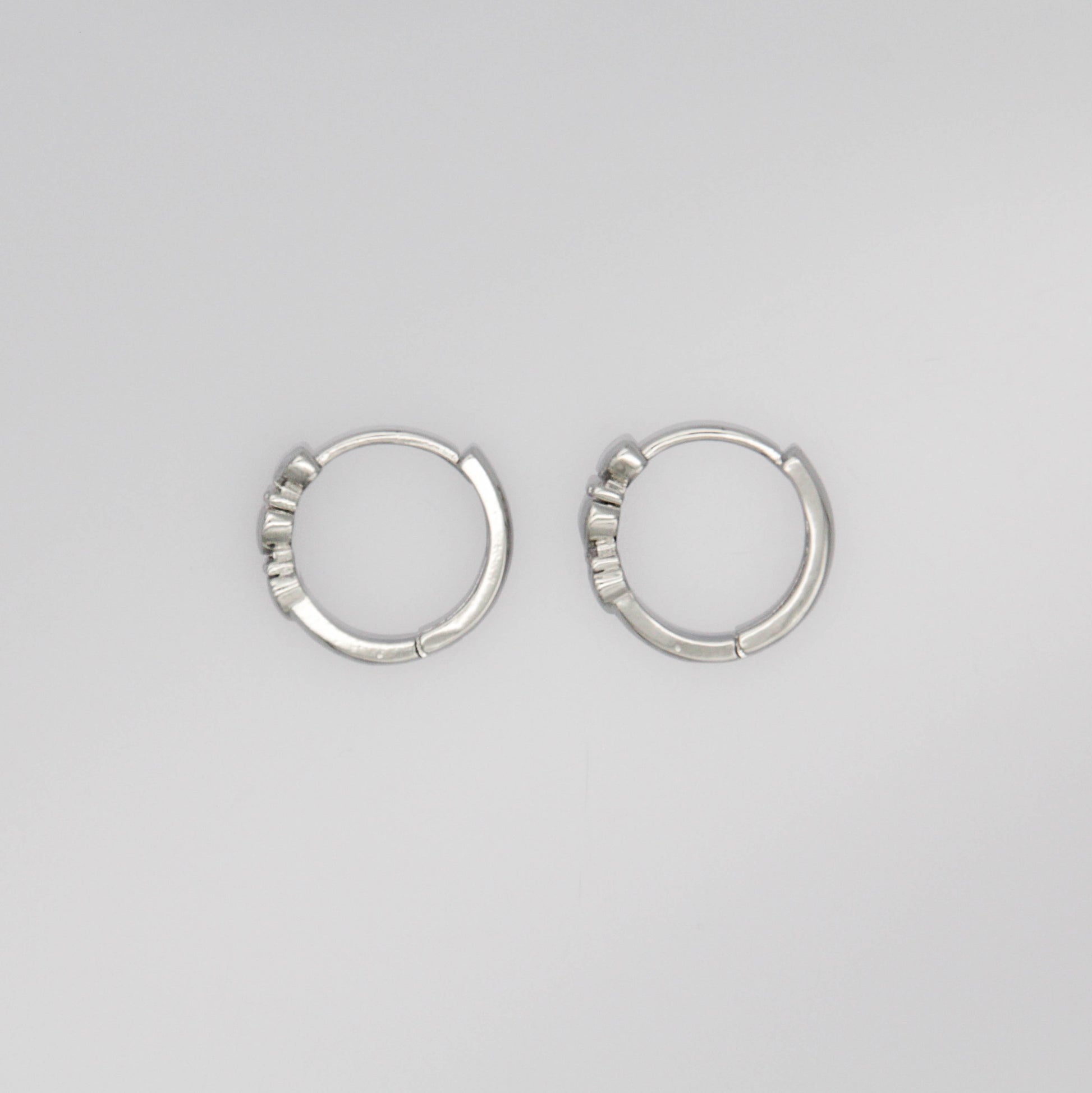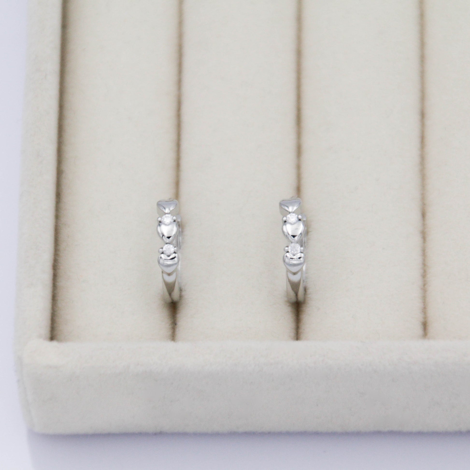 Ezüst színű "hoop" típusú fülbevaló szívekkel és cirkónia kristályokkal.