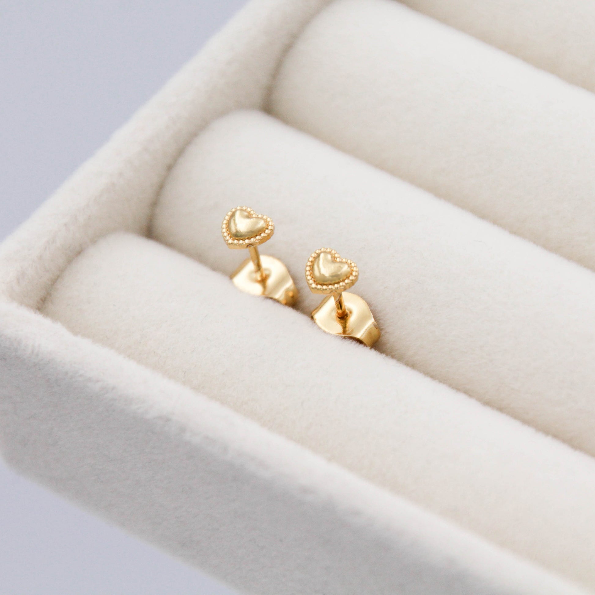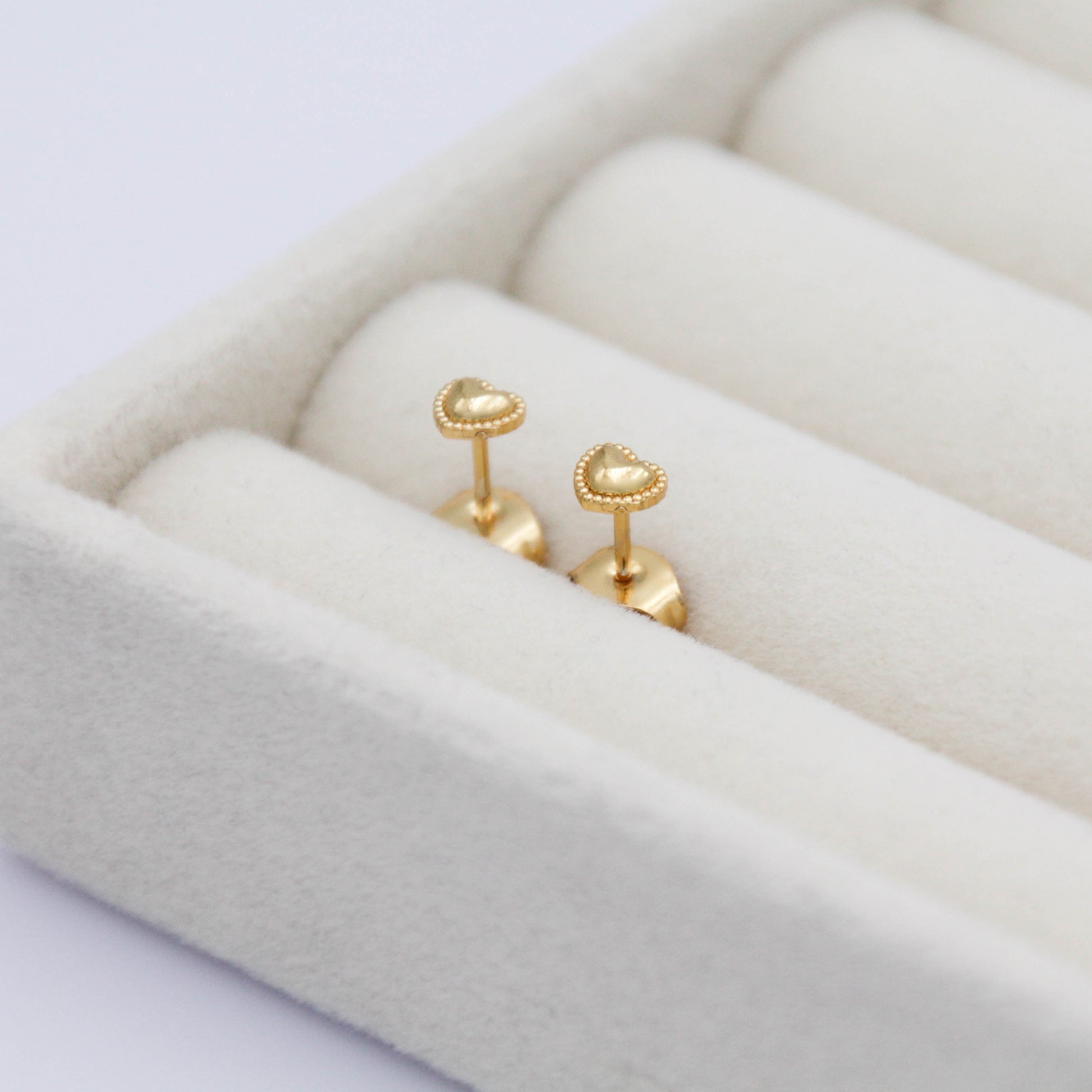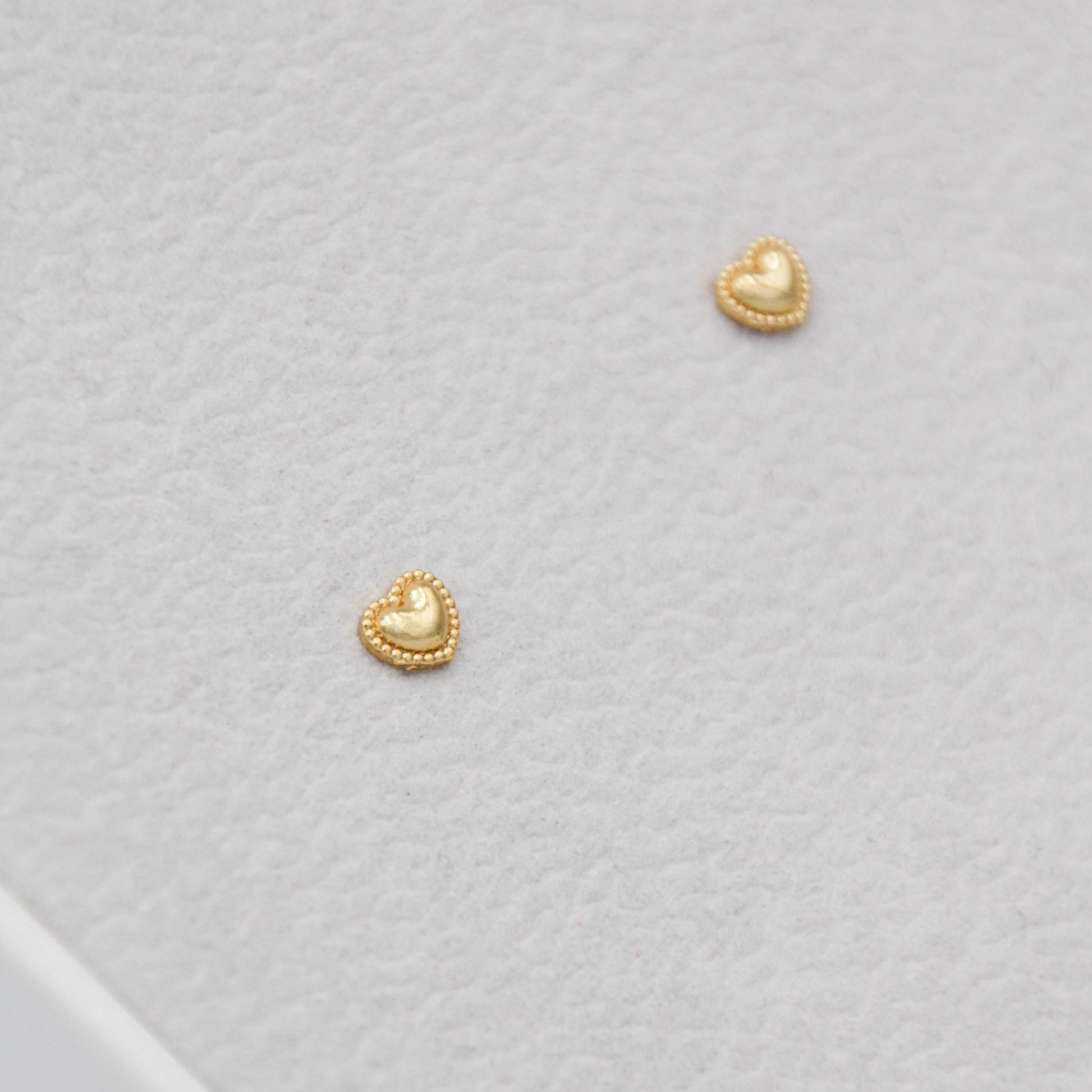 Arany színű, szívecske formájú beszúrós fülbevaló.