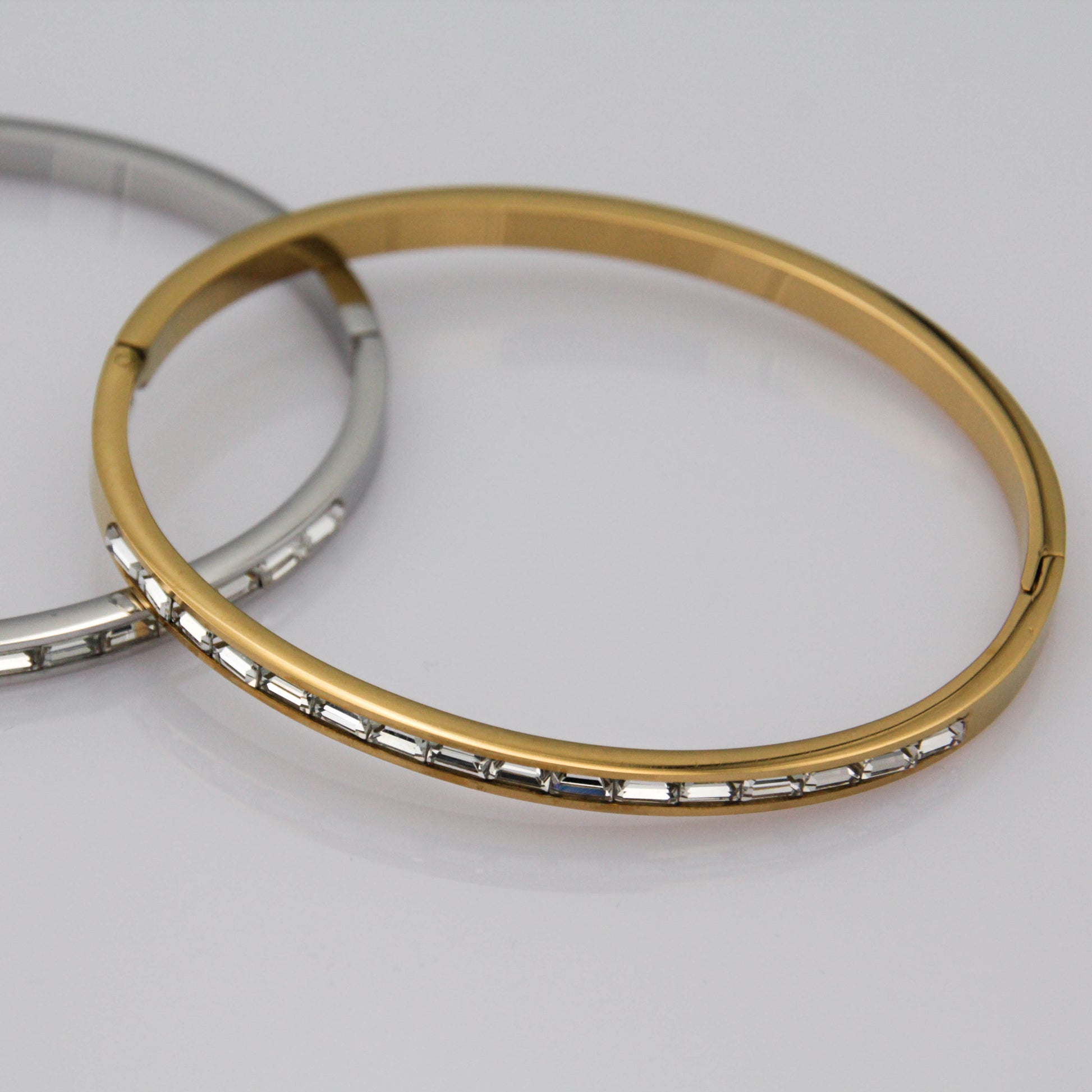 - Anyaga: aranyozott rozsdamentes nemesacél, cirkónia kristályok