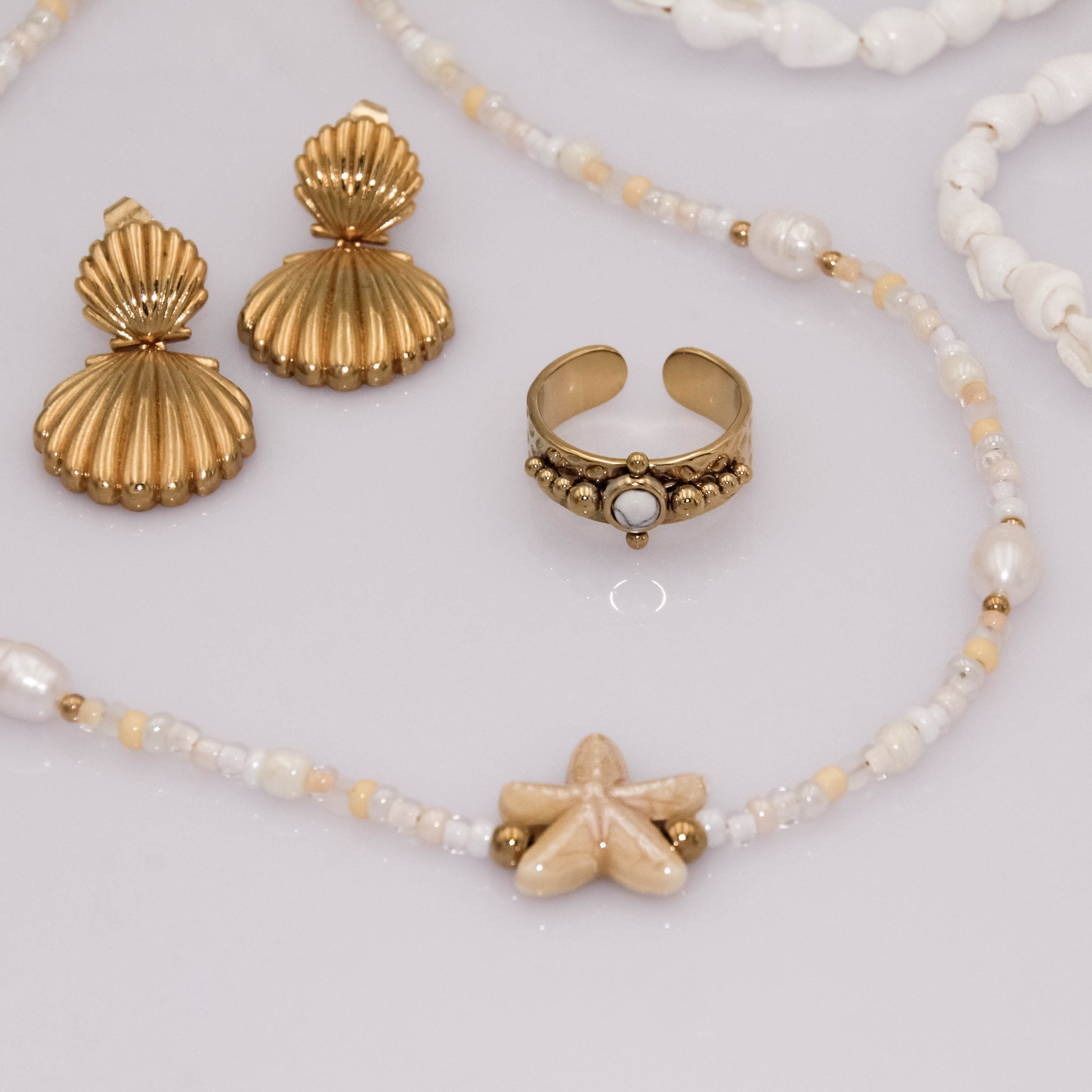 - Anyaga: aranyozott rozsdamentes nemesacél, természetes kő.