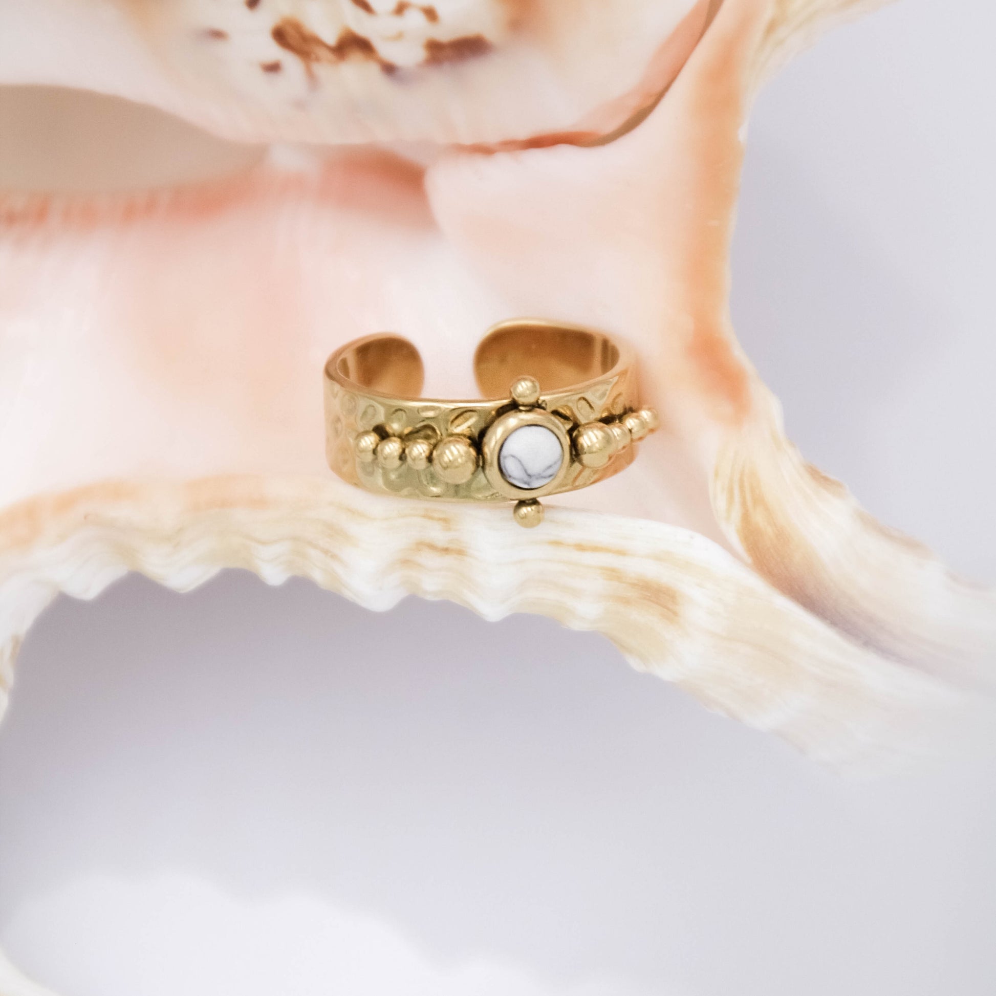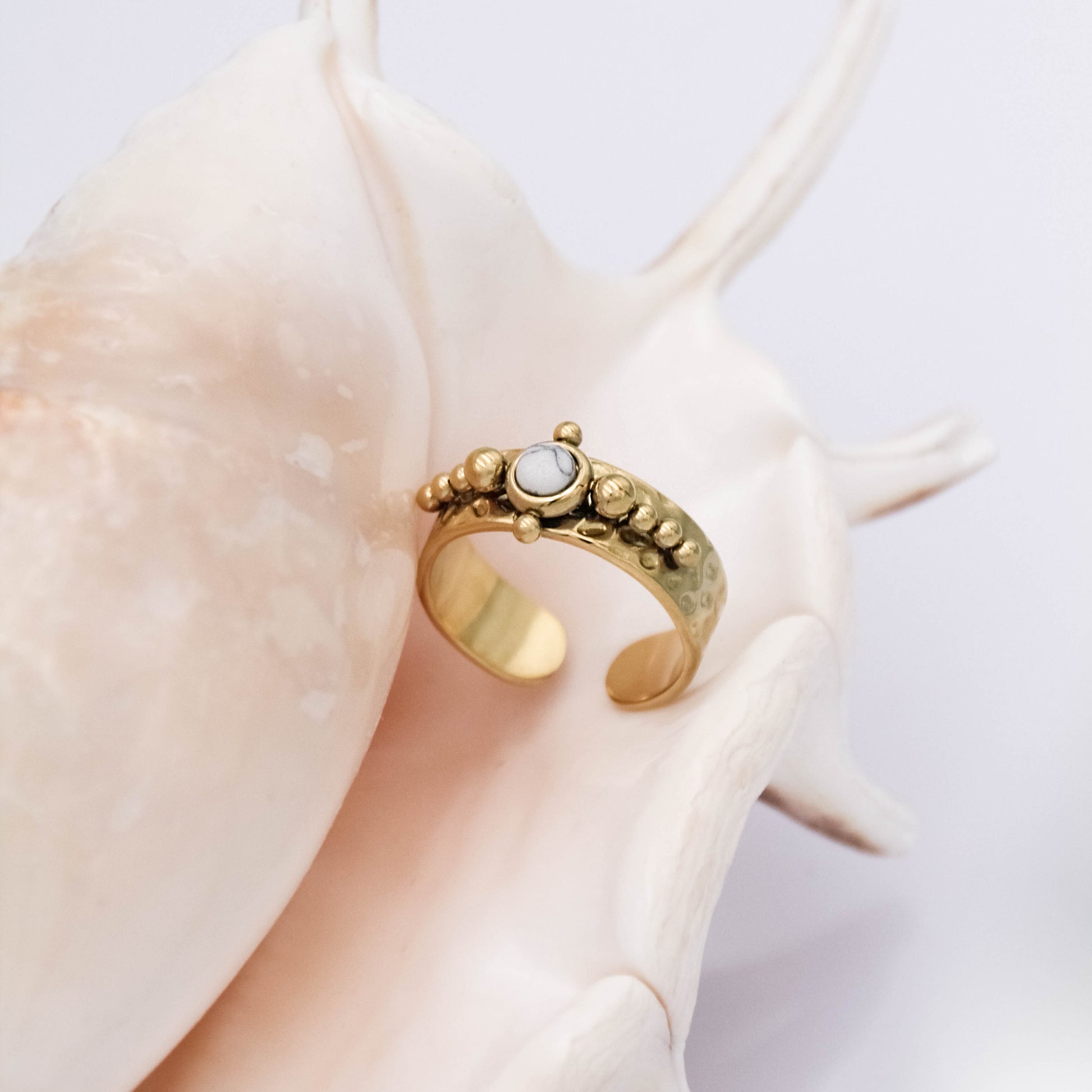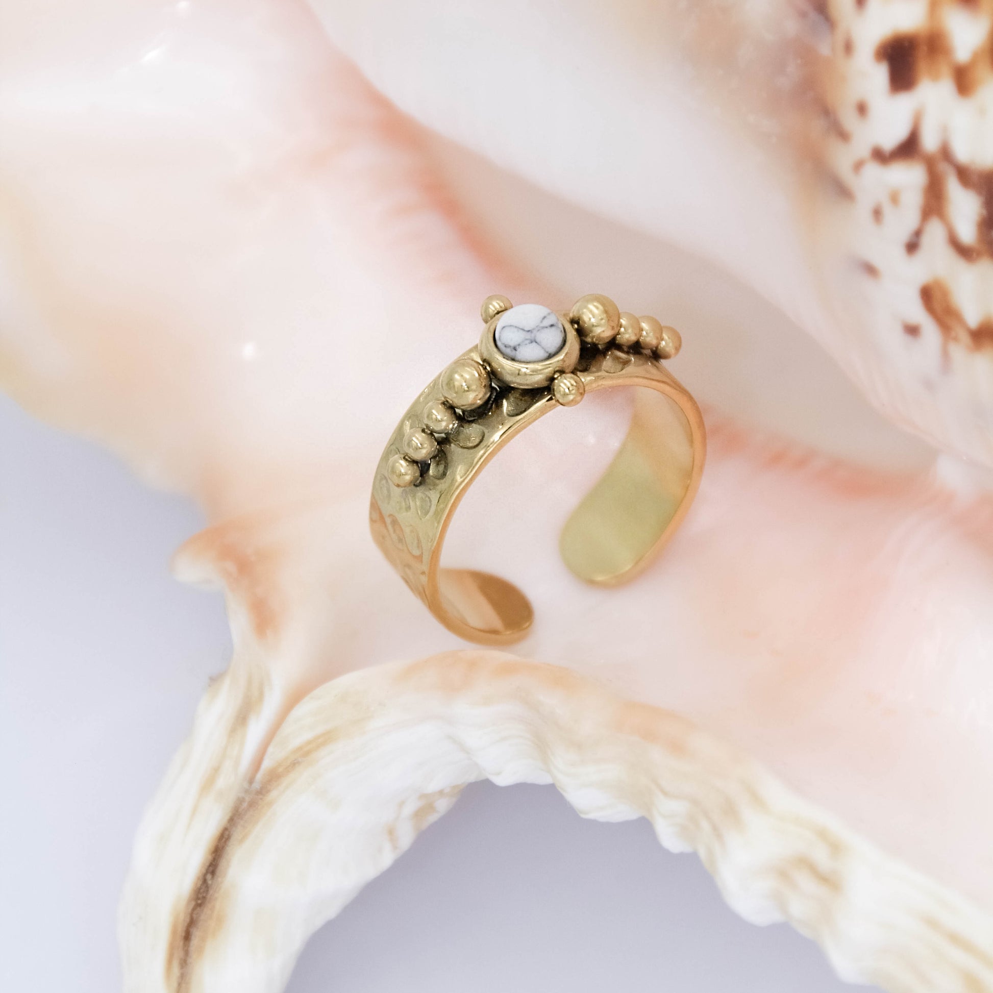 Arany színű, állítható méretű gyűrű természetes kő berakással.