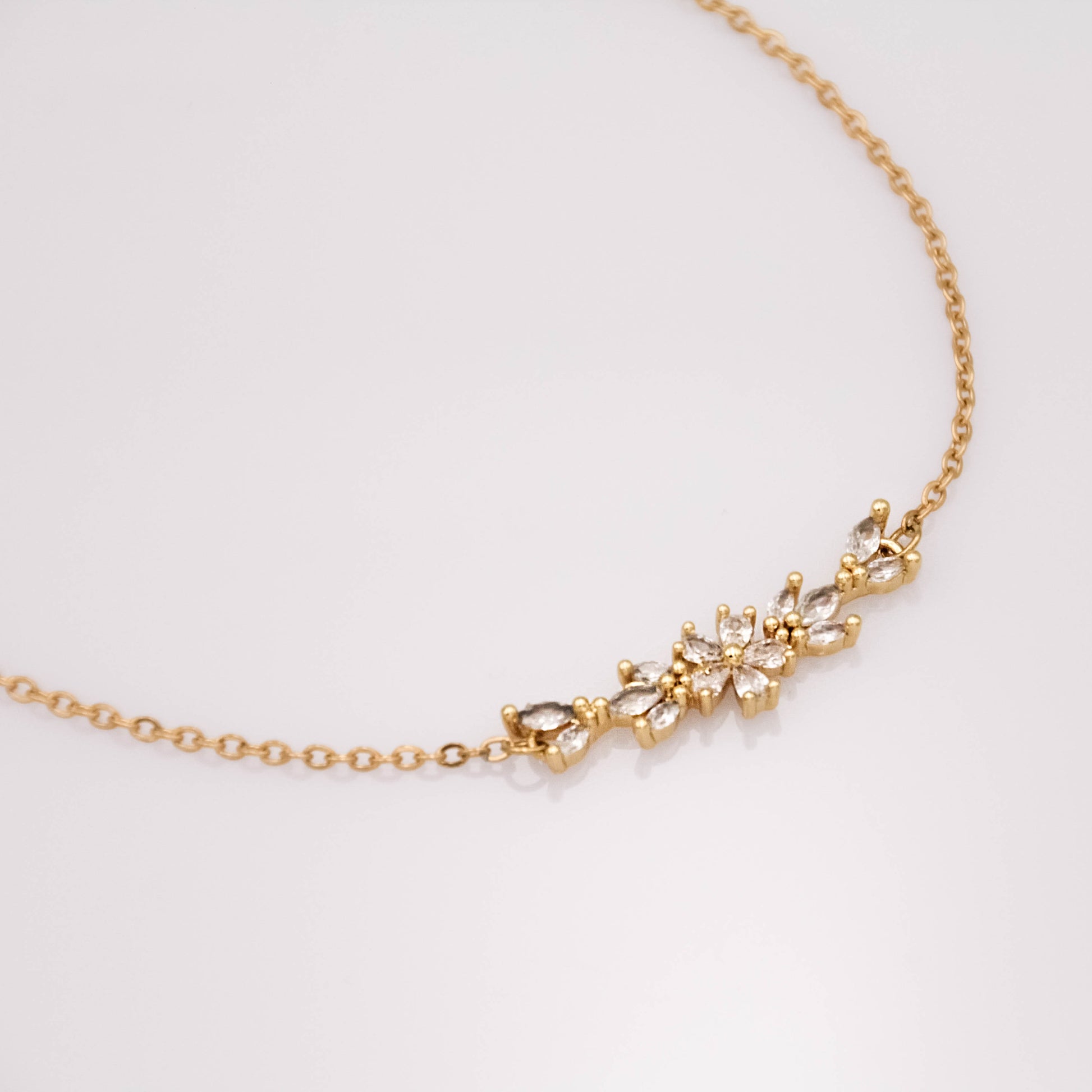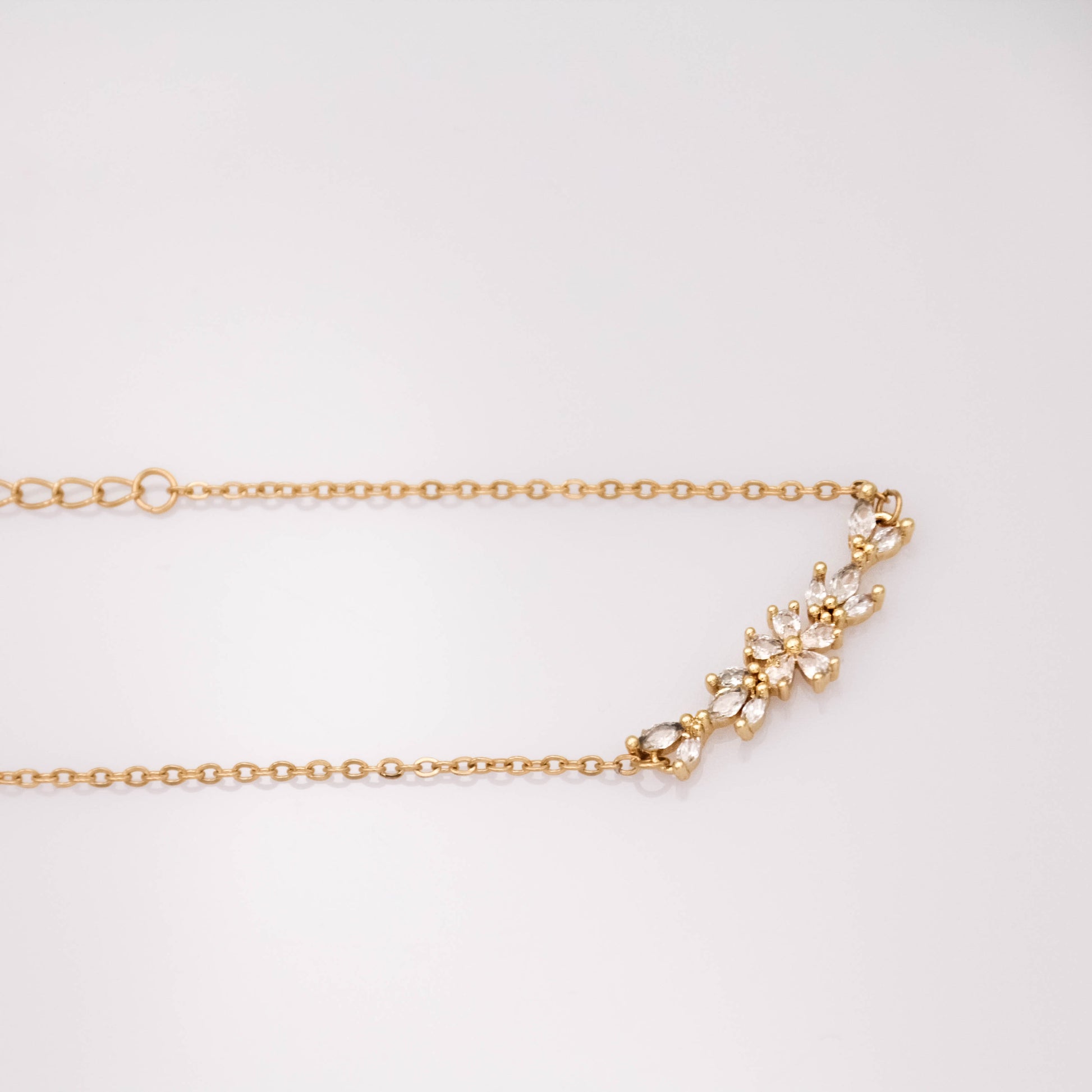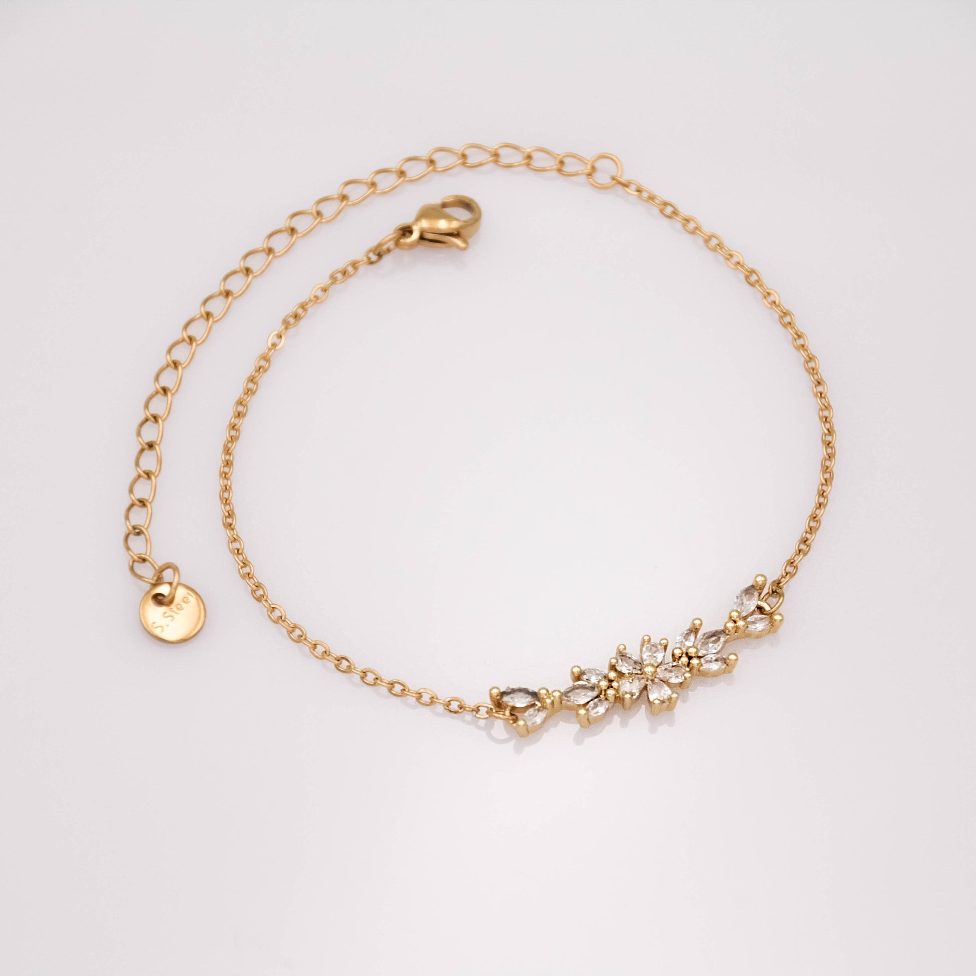 Arany színű karkötő cirkónia kristályos virág medállal.