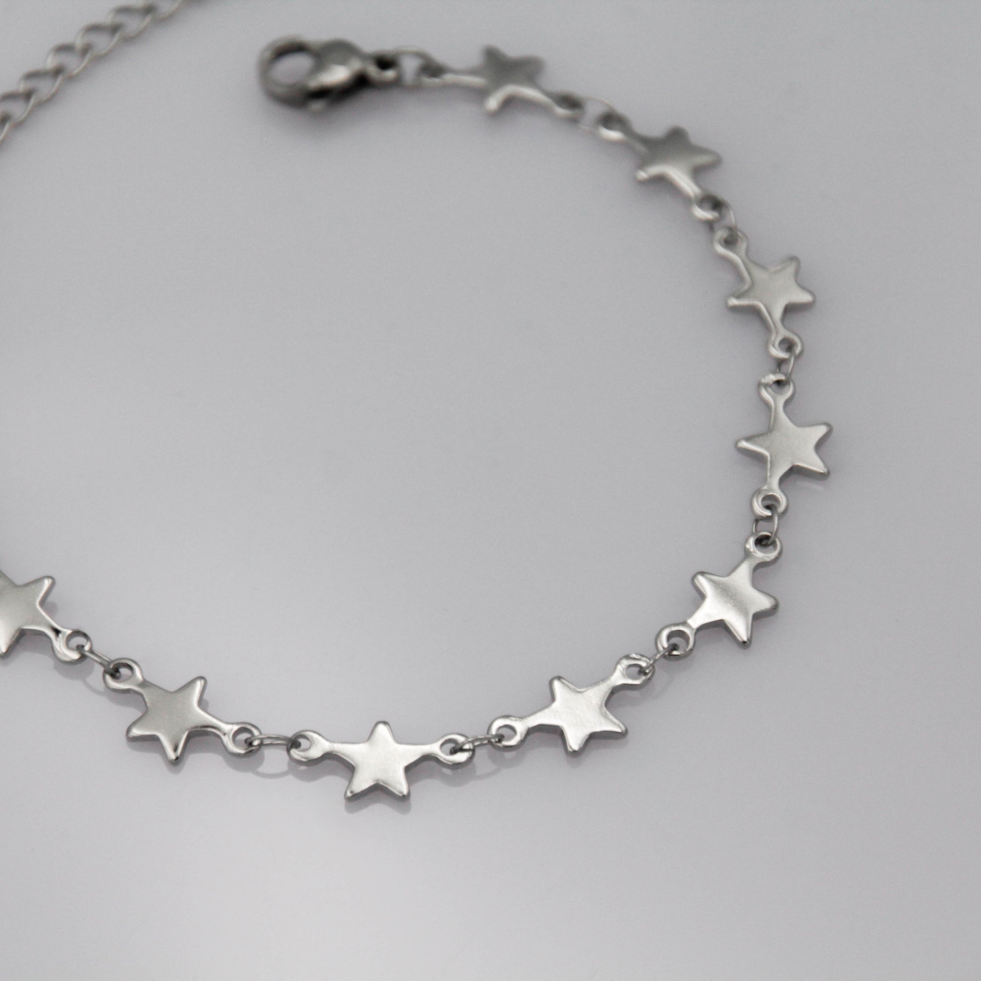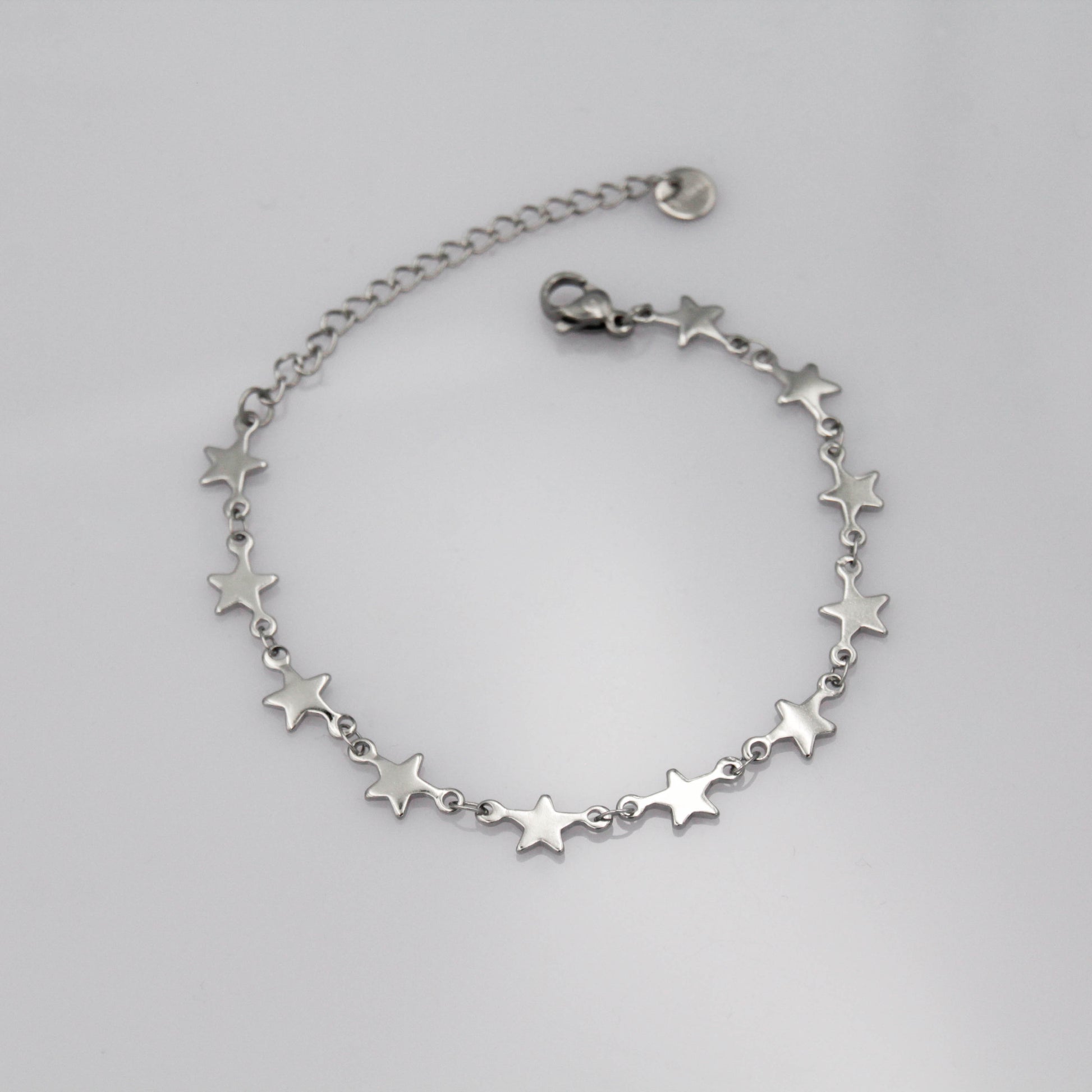 Ezüst színű apró csillagokból álló karkötő.