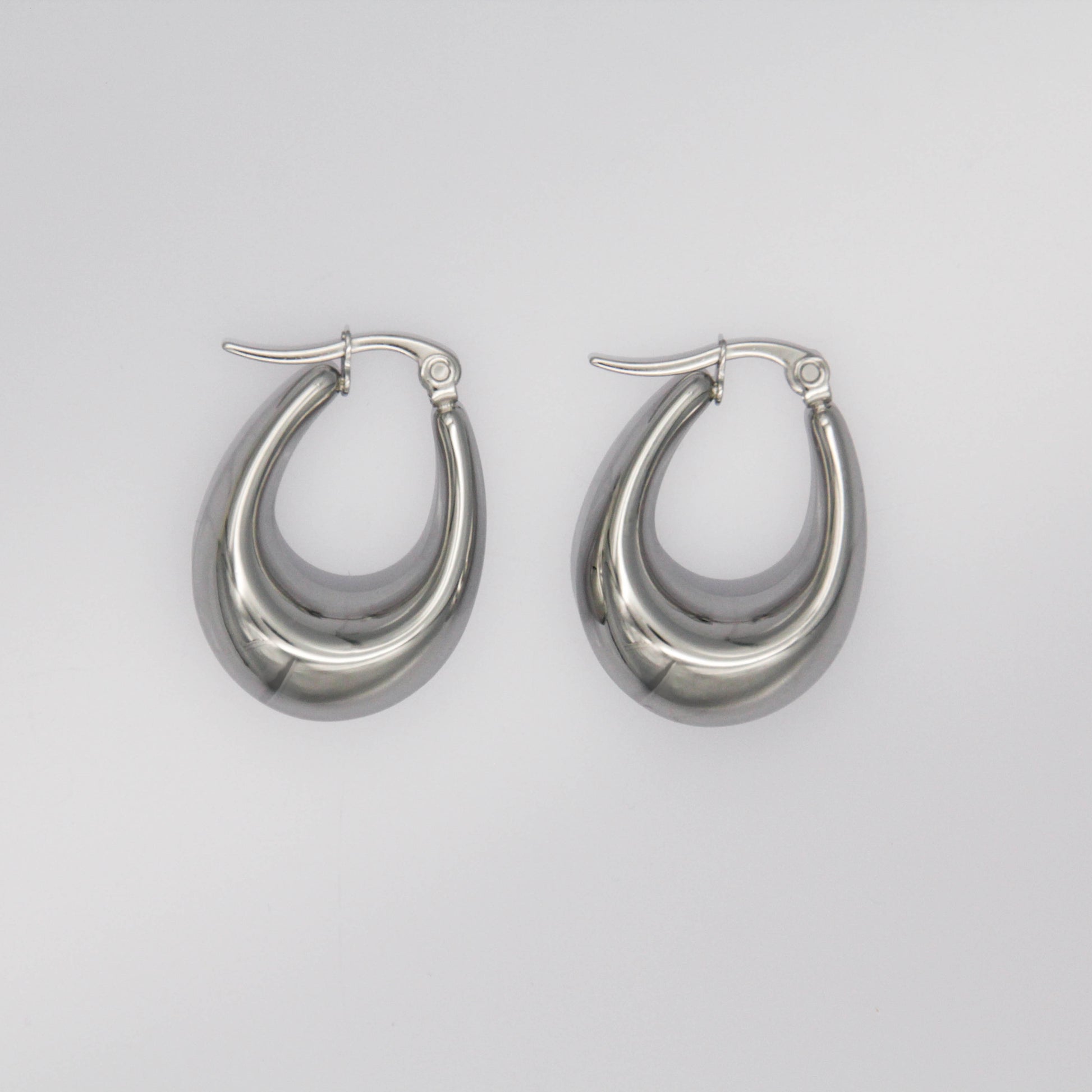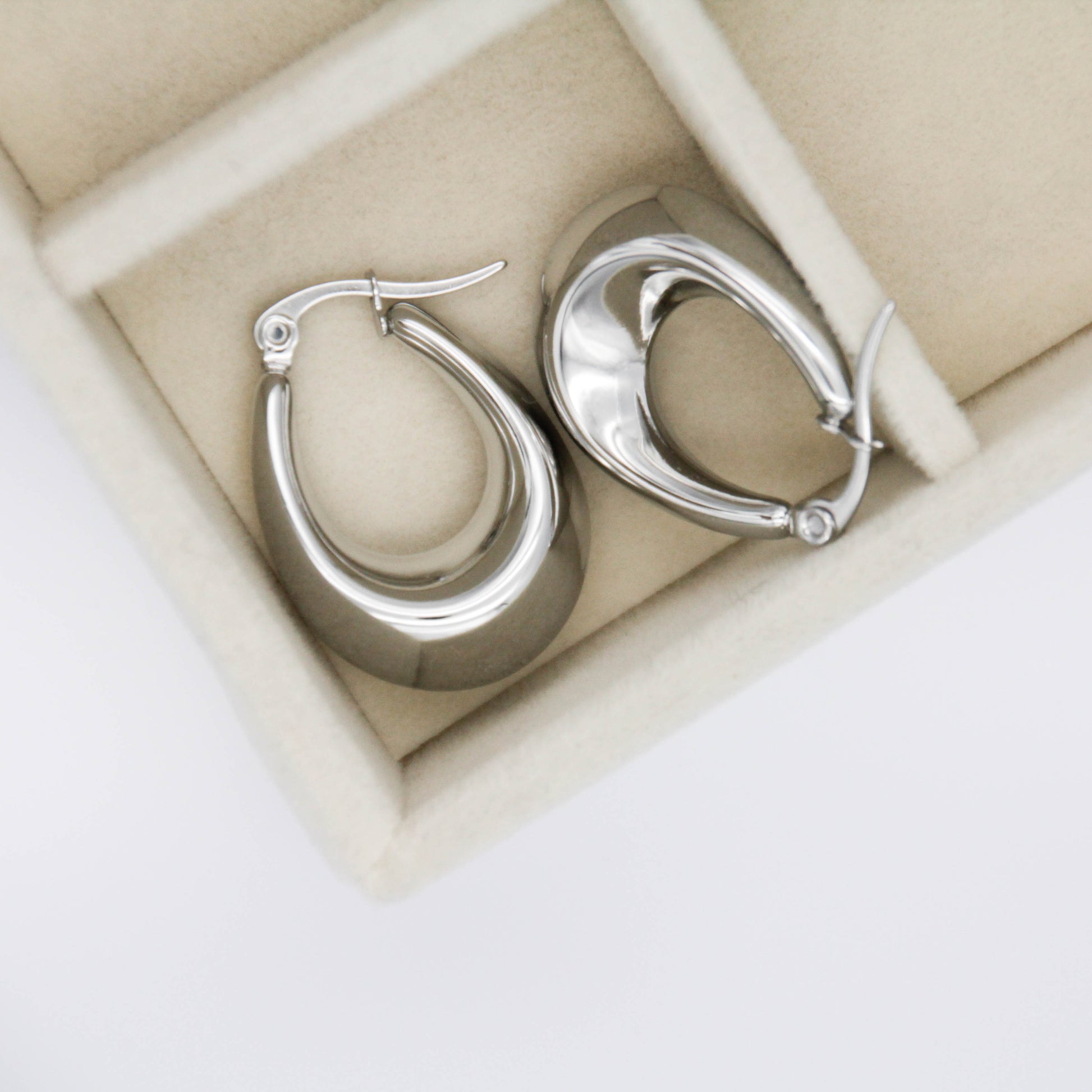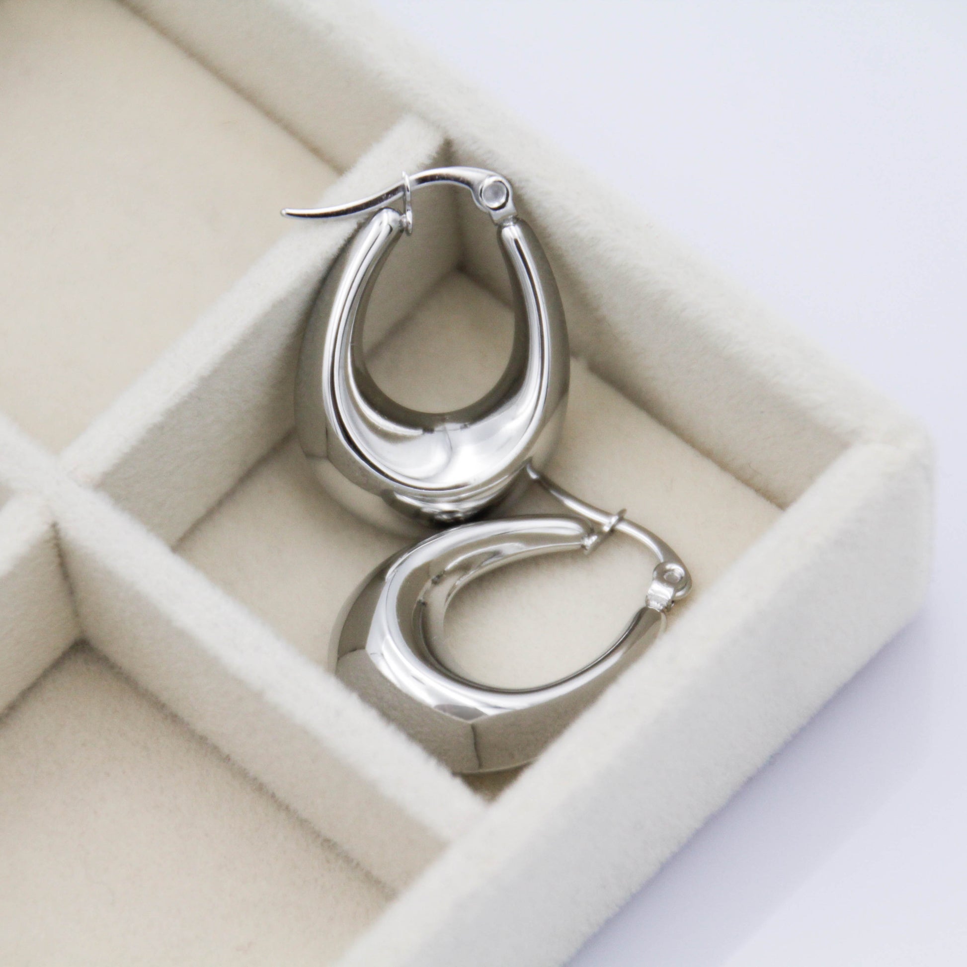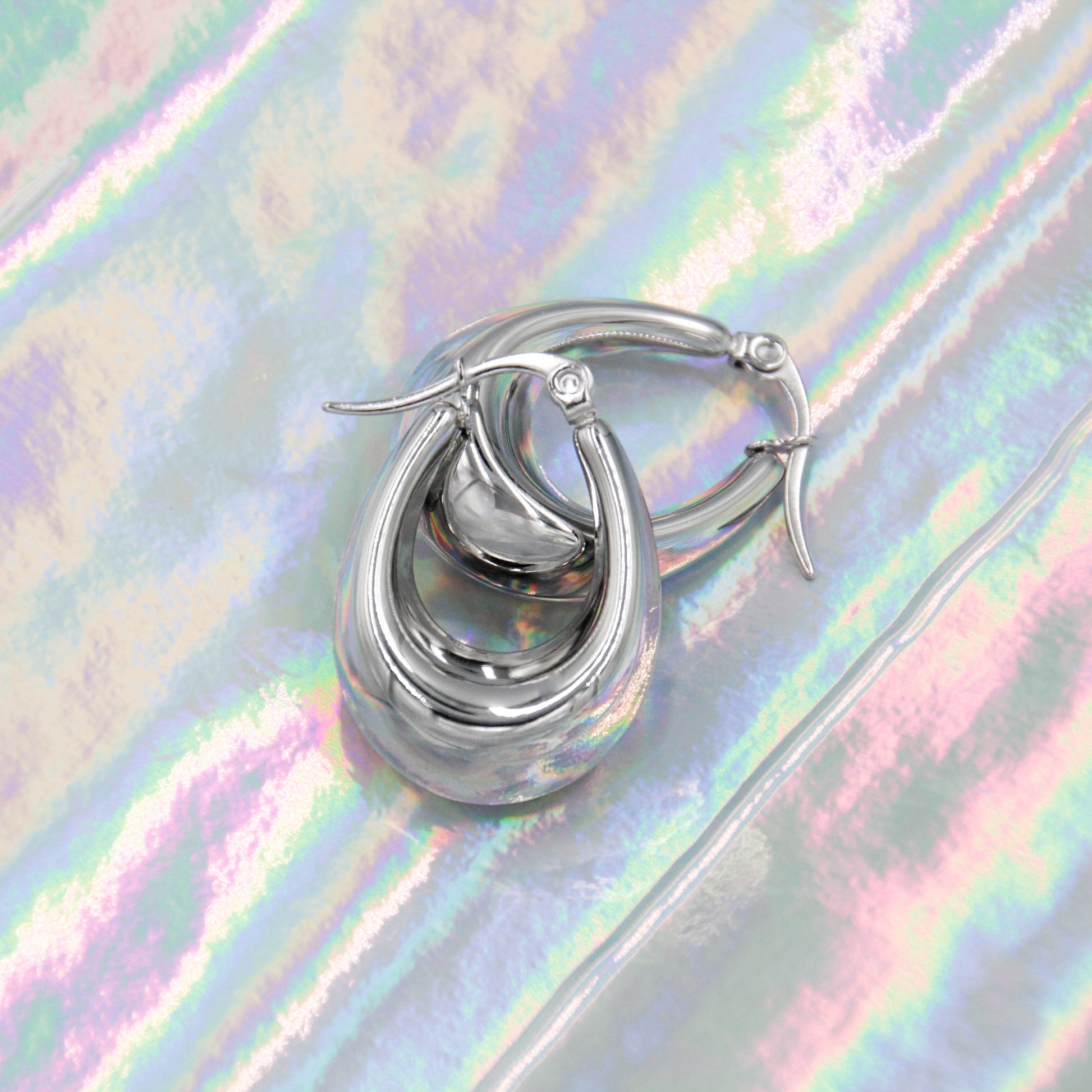 Ezüst színű "chunky hoop" típusú, csepp alakú fülbevaló.