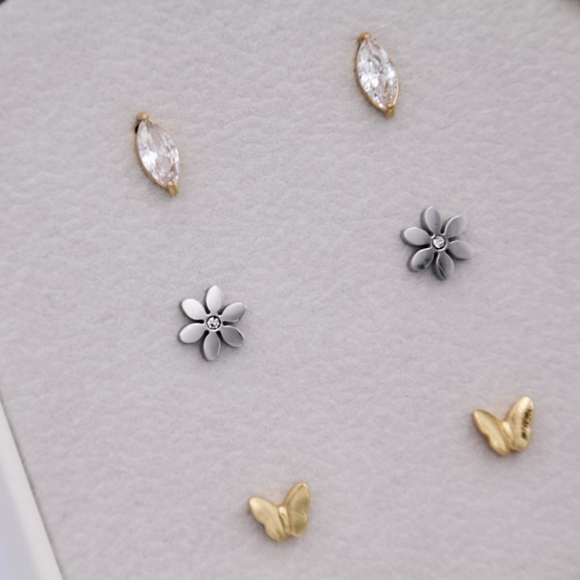 Arany színű "beszúrós" típusú, pillangó alakú fülbevaló.
