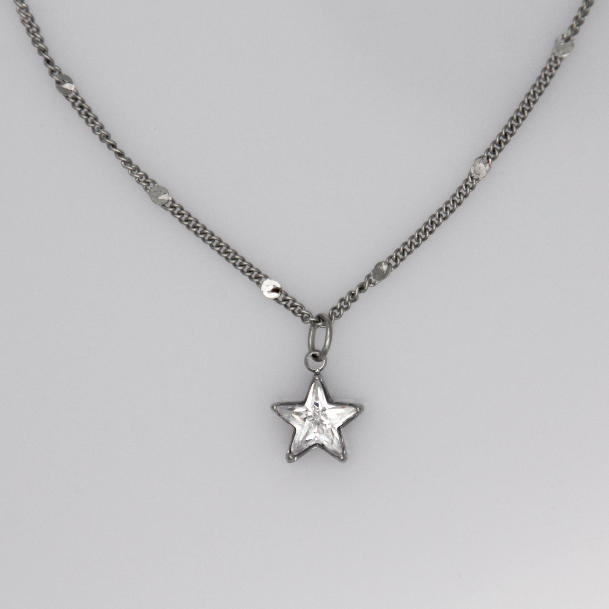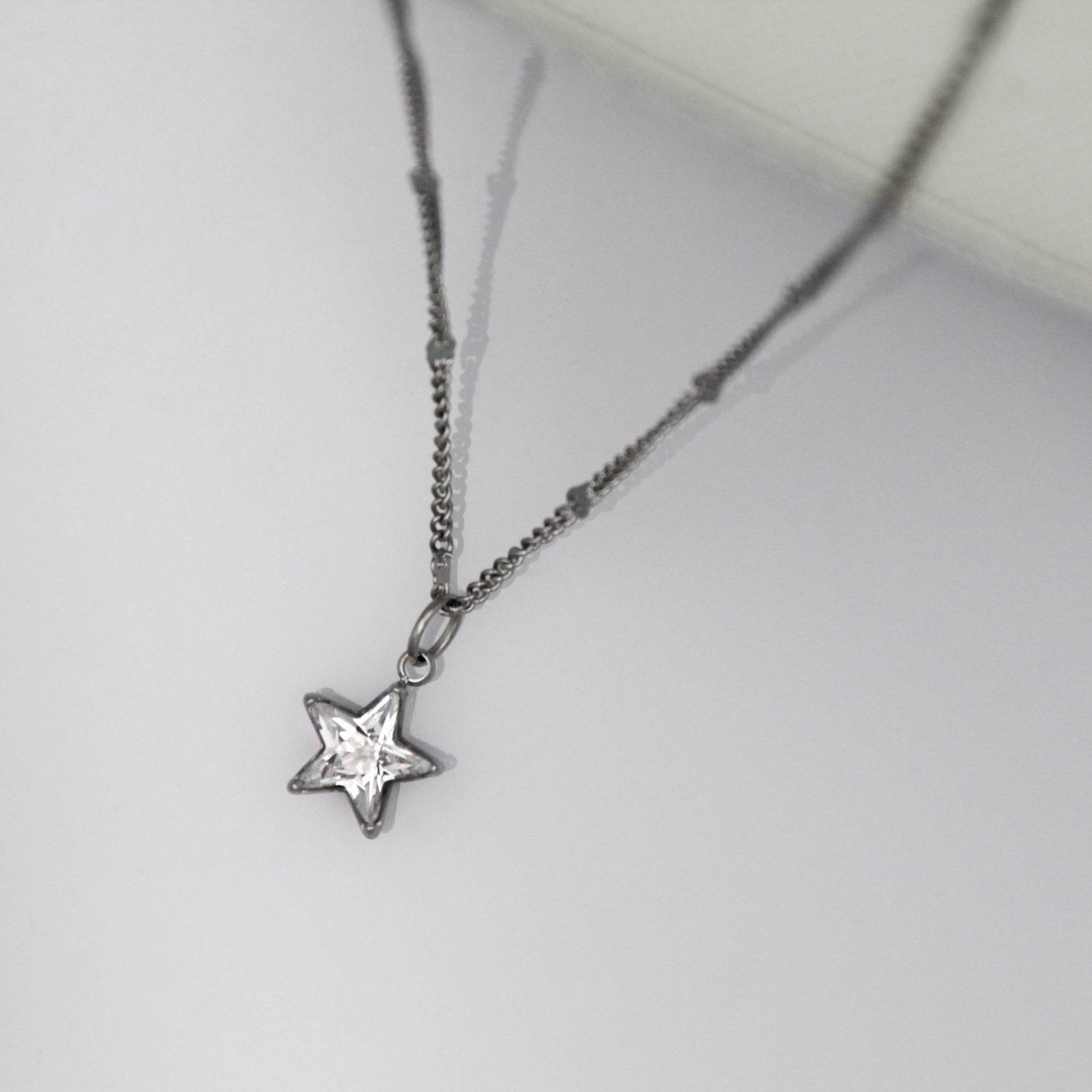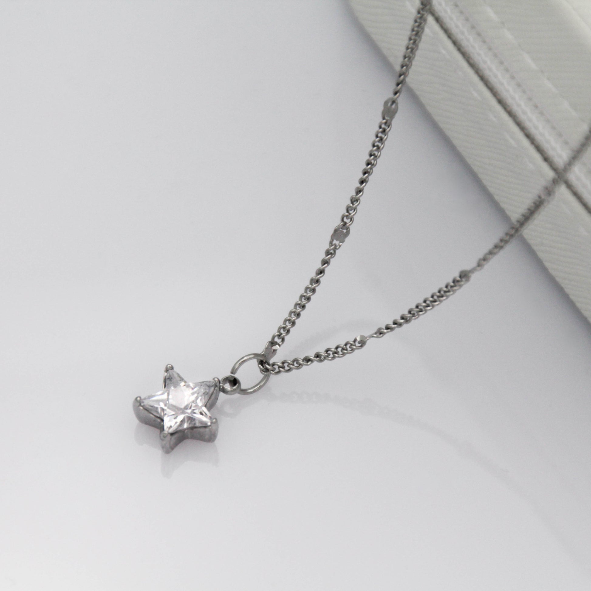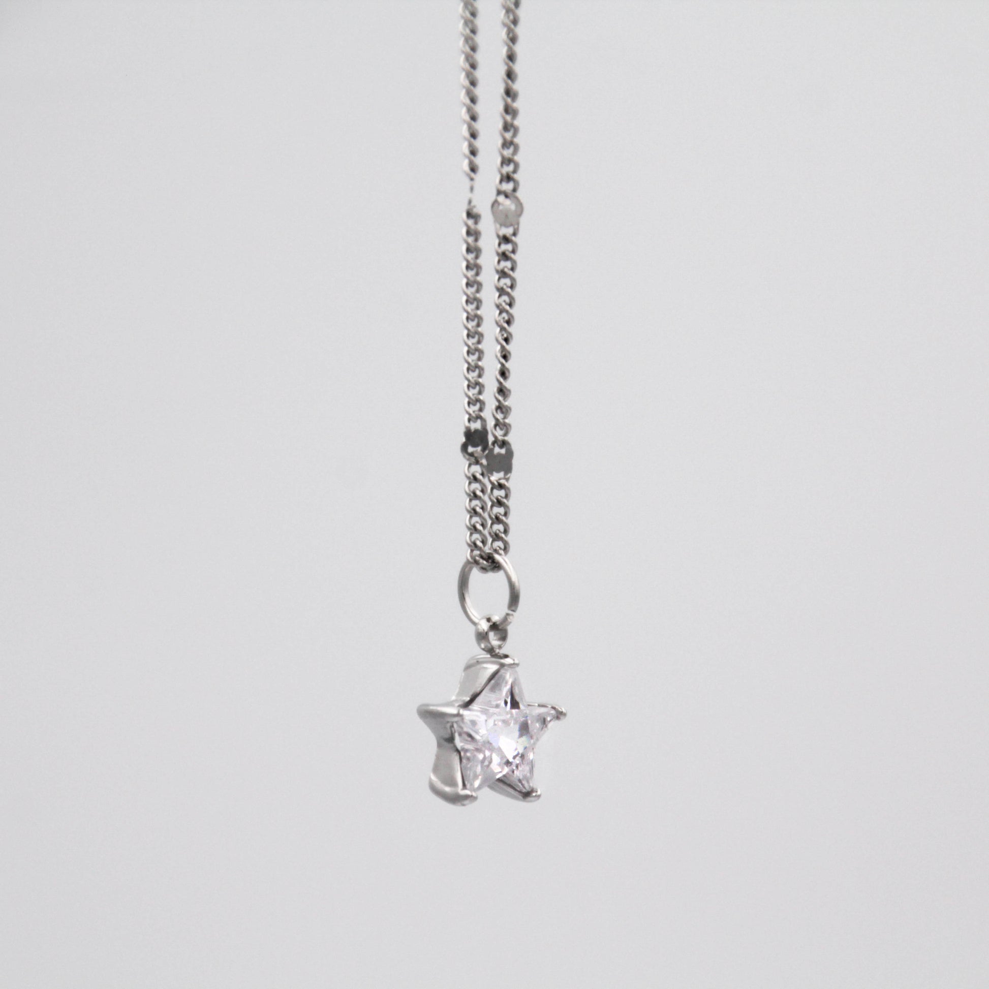 Ezüst színű nyaklánc csillag alakú cirkónia kristály medállal.