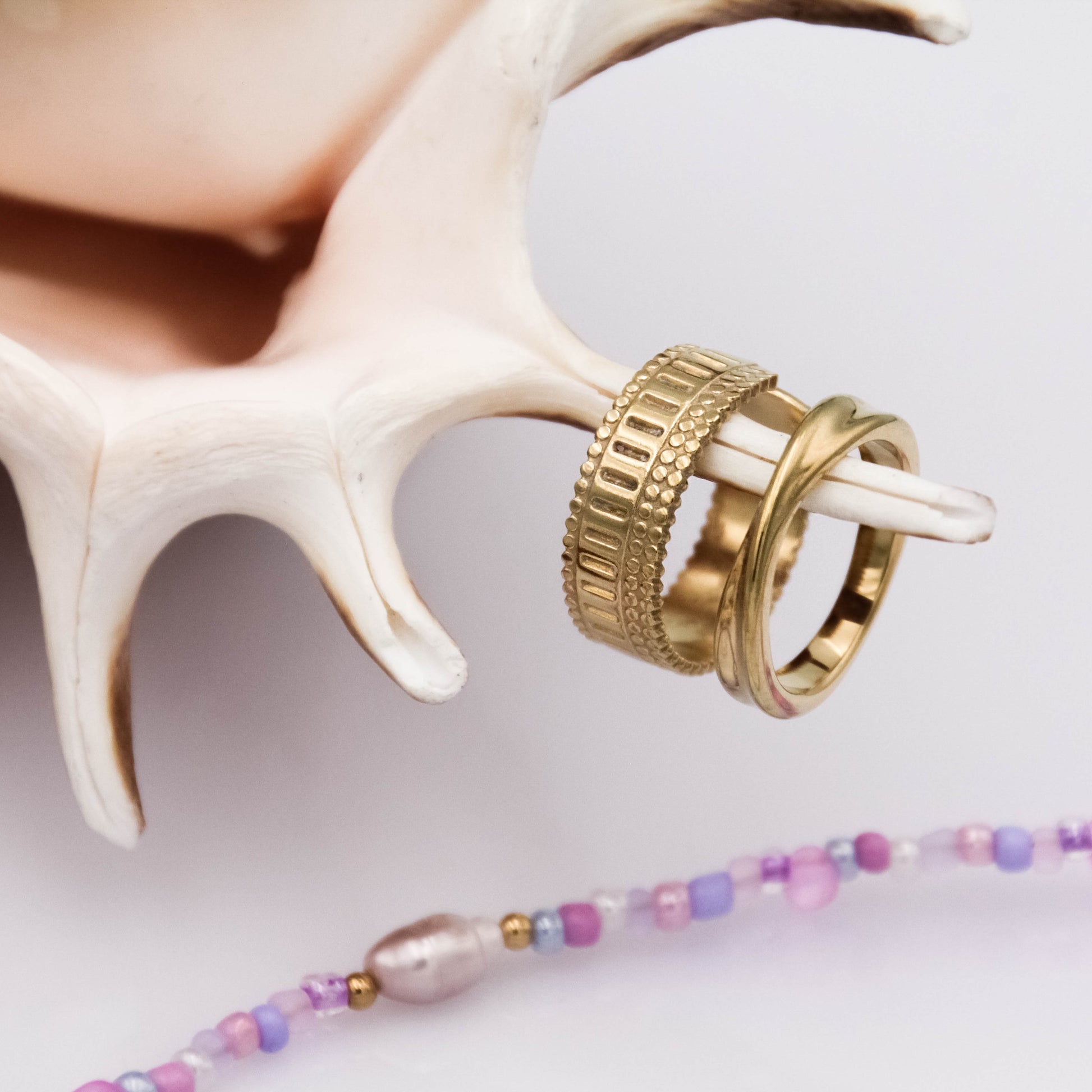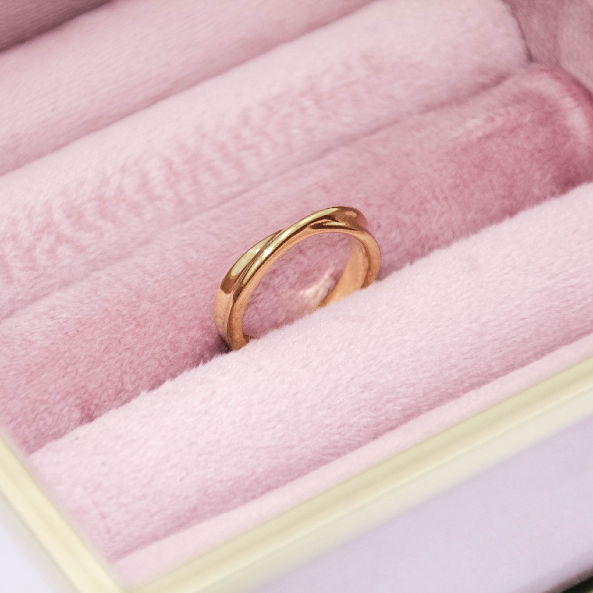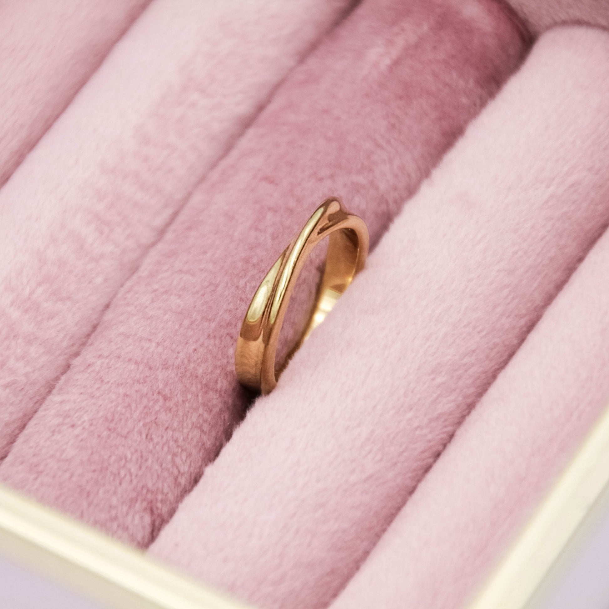 Arany színű, csavart formájú gyűrű.