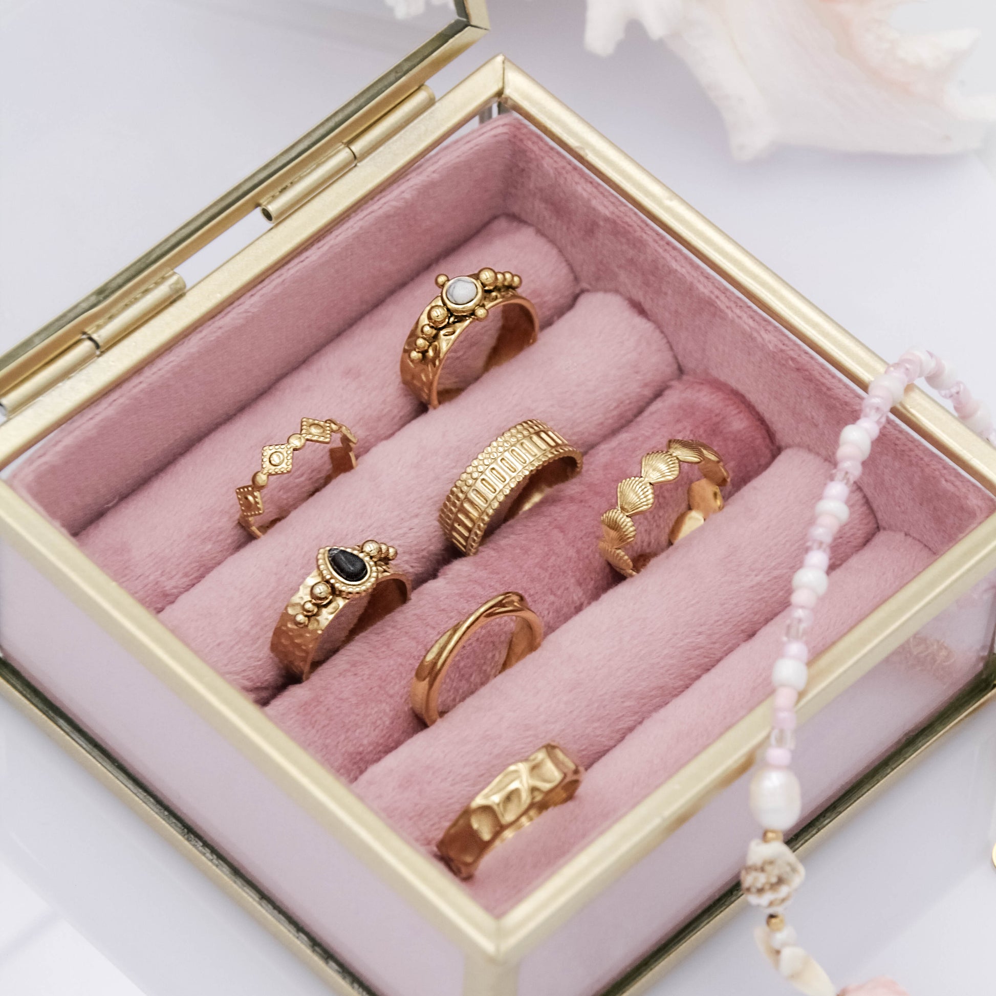 - Anyaga: aranyozott rozsdamentes nemesacél.